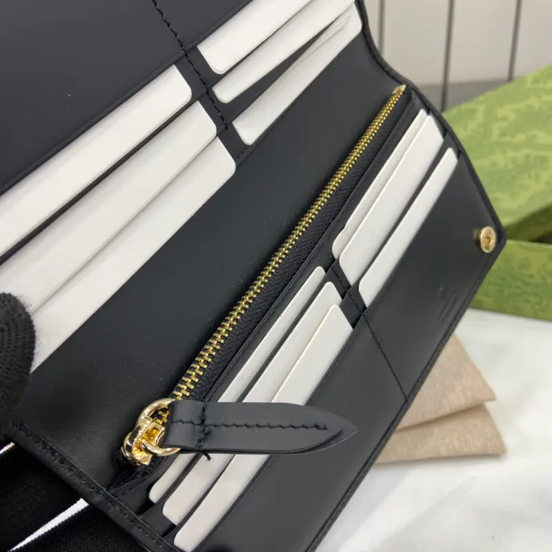 [Includes full original green box packaging] [New] GG Emblem. The new GG Emblem collection reinterprets the brand’s timeless elegance and exquisite craftsmanship. This beige and dark brown mini wallet is a fresh take on the brand’s new small accessories collection, crafted from canvas with the new GG monogram. Carefully designed with multiple compartments and card slots, it cleverly incorporates a practical snap closure. Model: 821802. Dimensions: 19 (L) x 11 (W). Color: Brown PVC leather/Original leather. Made in Italy.