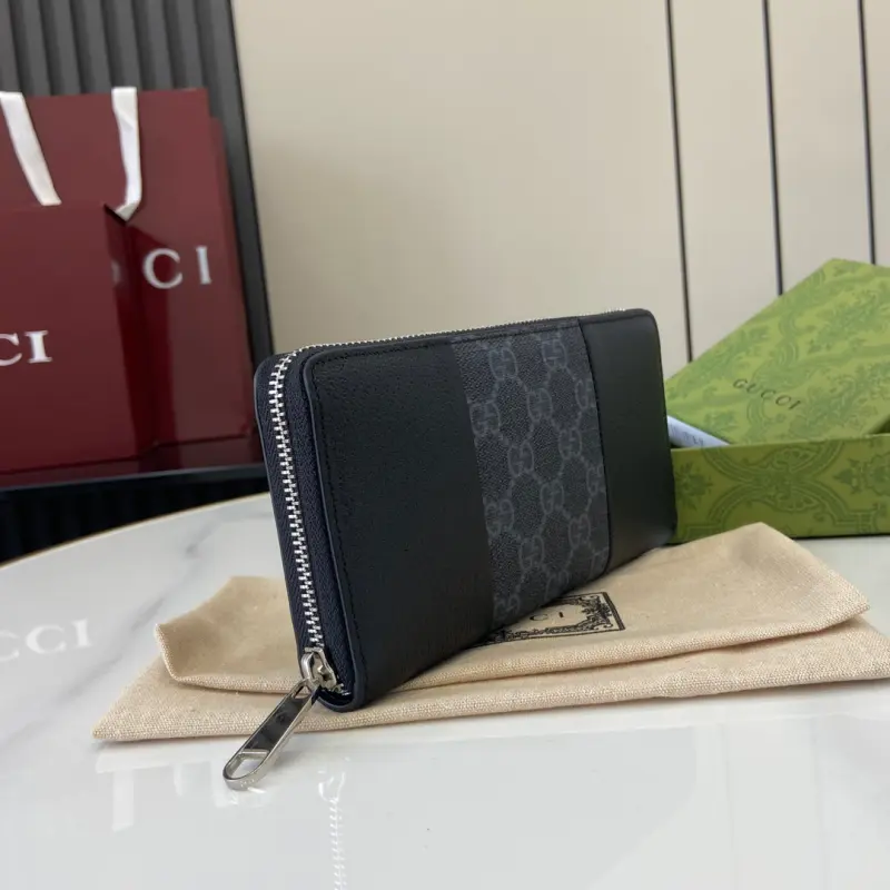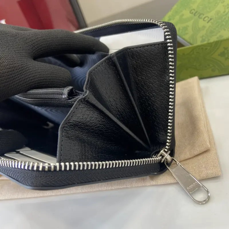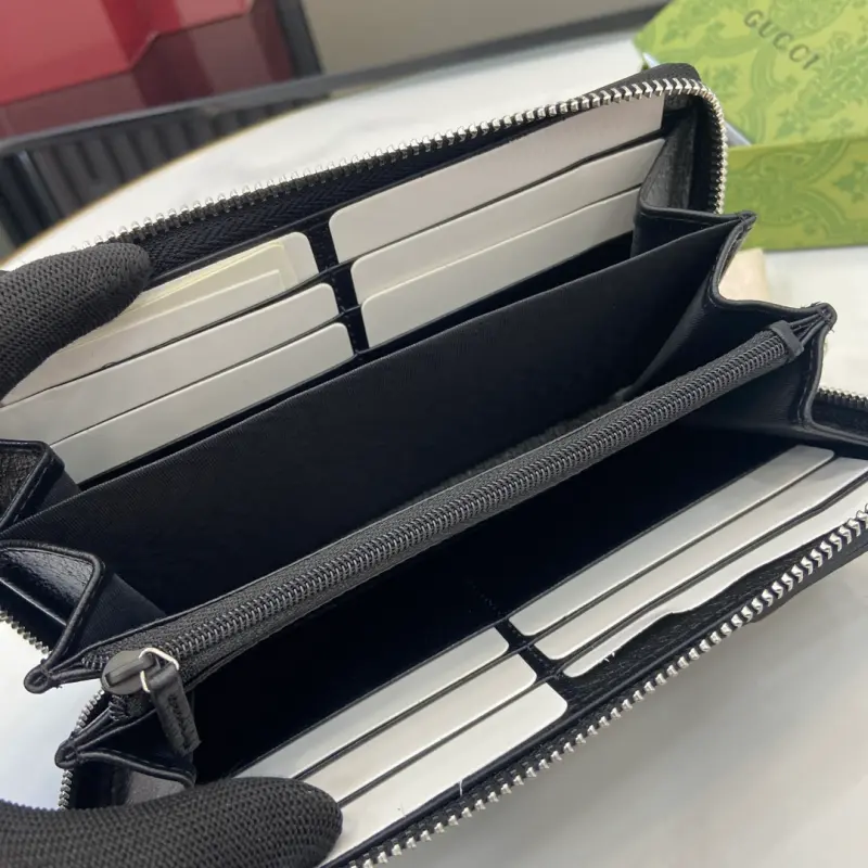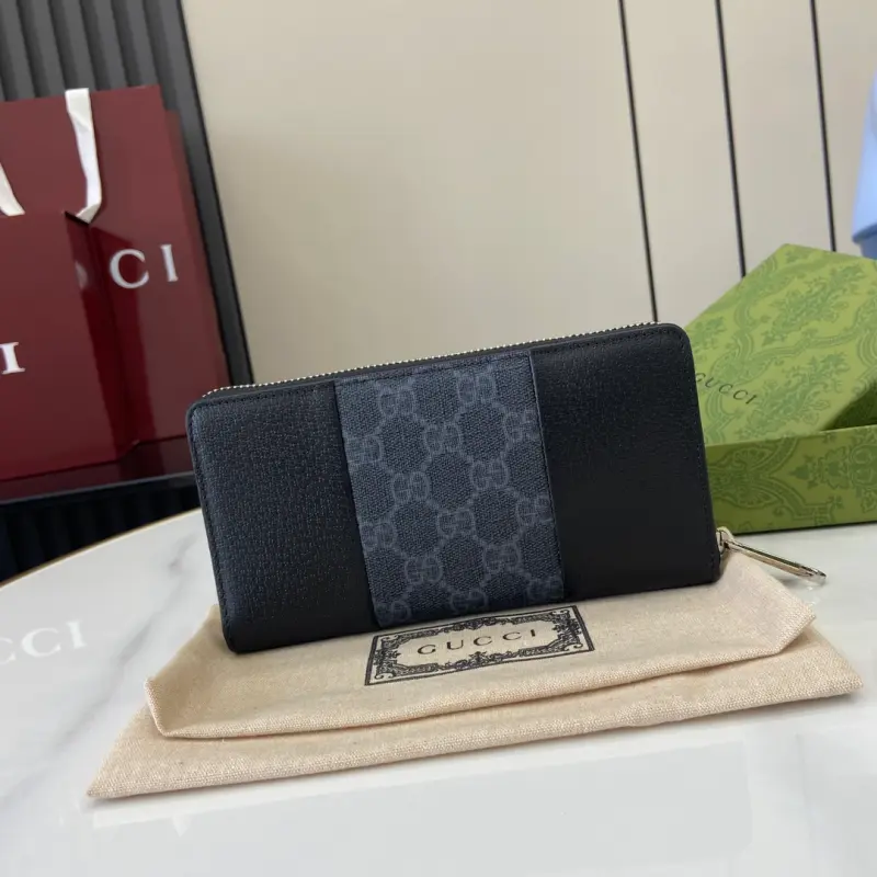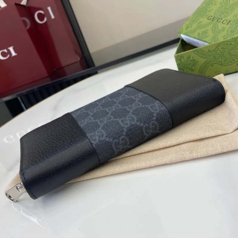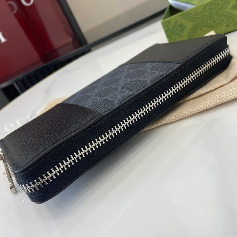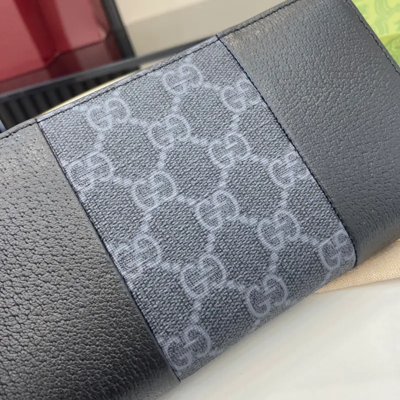 [New] Gbag’s latest GG Supreme PVC and pig-grained leather wallet. Model: 821803. Dimensions: 19cm (length) x 10cm (width) x 2.5cm (thickness). Color: black. Made in Italy.