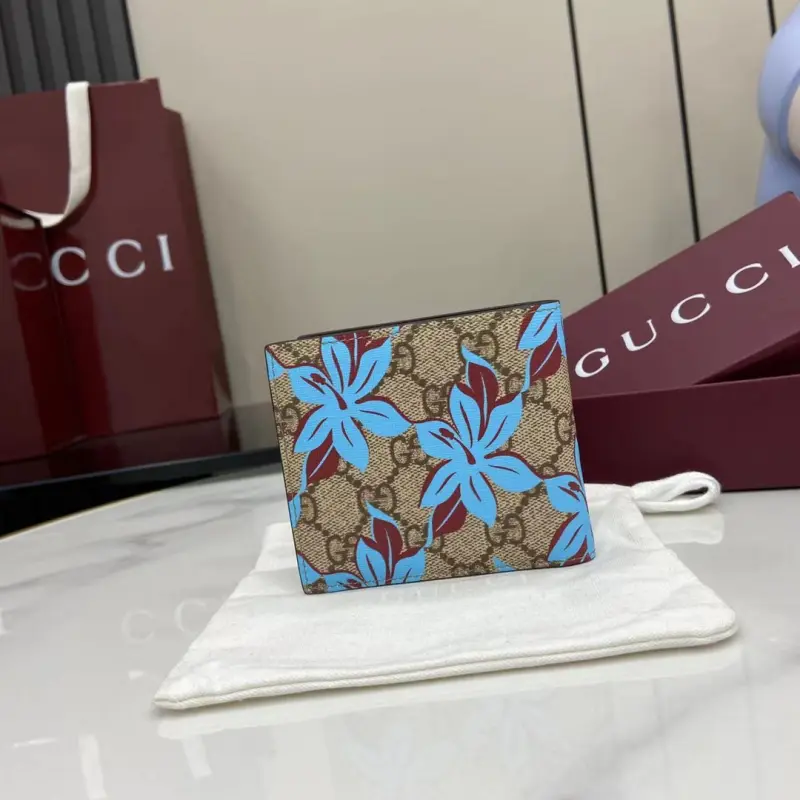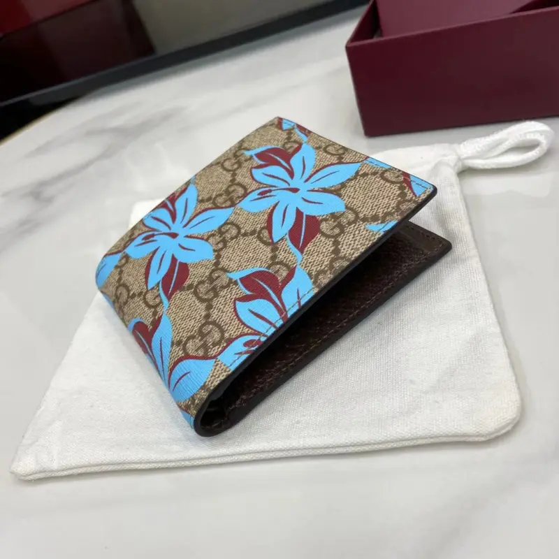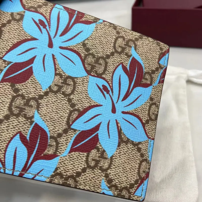 [Comes with full original factory packaging] [New Arrival] The iconic GG Supreme canvas makes a stunning appearance in the 2025 Early Fall Collection, reinterpreting the new floral print in blue tones. This beige and dark brown bifold wallet is embellished with a modern floral pattern and GG logo. Beige and dark brown GG Supreme canvas with an all-over blue floral print and moir?? fabric lining. Interior: 4 card compartments, 1 coin pocket. Model: 841146. Dimensions when closed: 11 cm (width) x 9 cm (height); dimensions when open: 21 cm (width) x 9 cm (height). Weight: Approximately 0.11 kg. Color: Brown gum print/original leather. Made in Italy