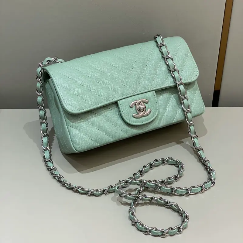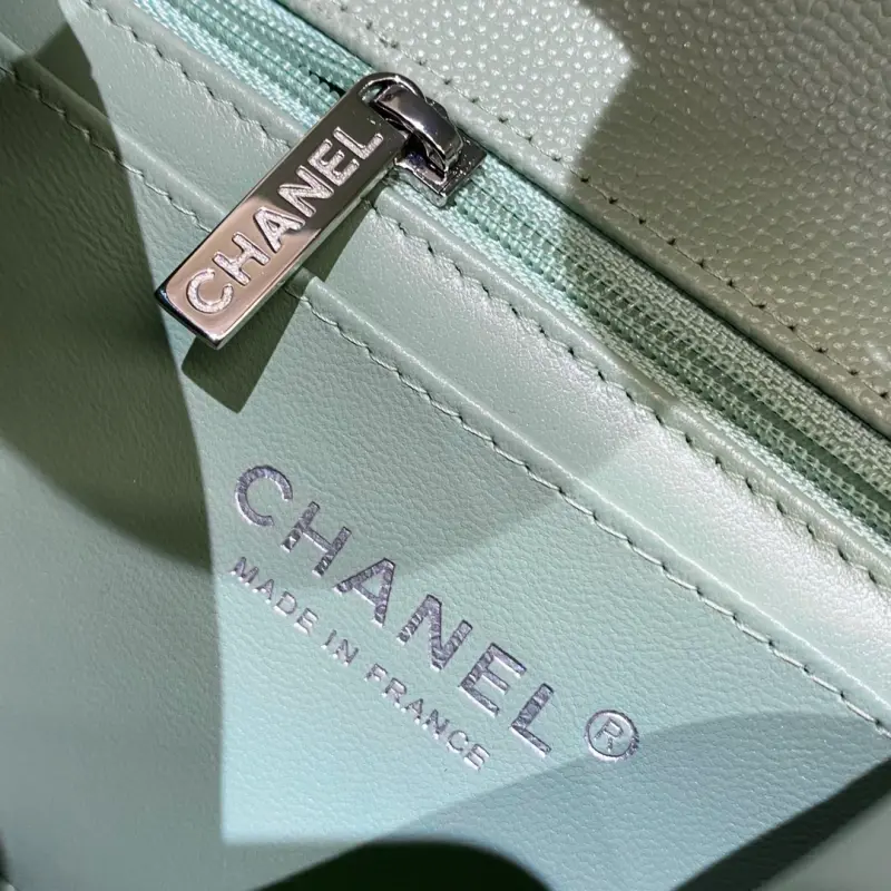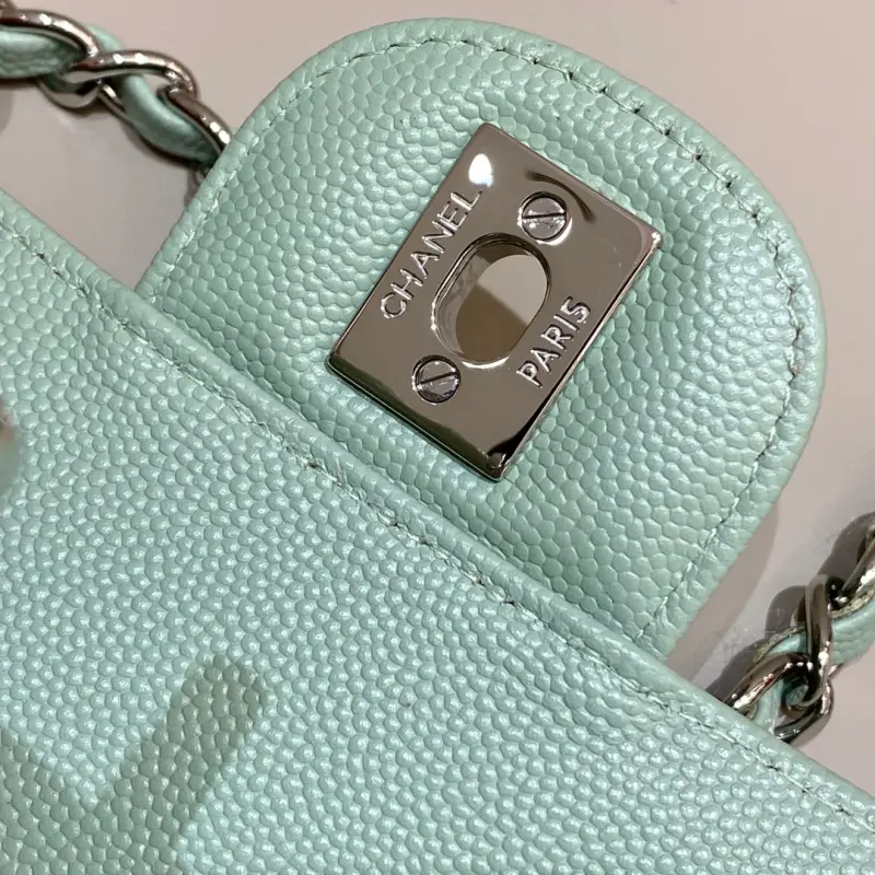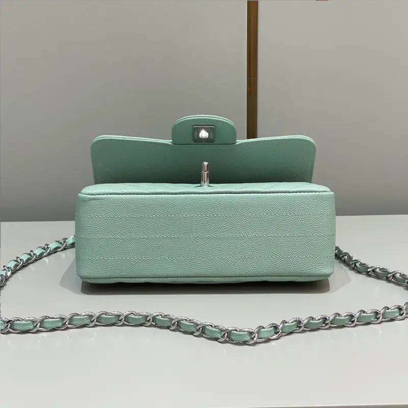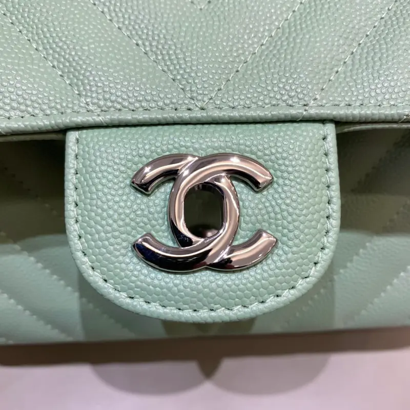 CF-Large Mini 20cm-V-grain Caviar Leather-Matcha Green Silver Buckle