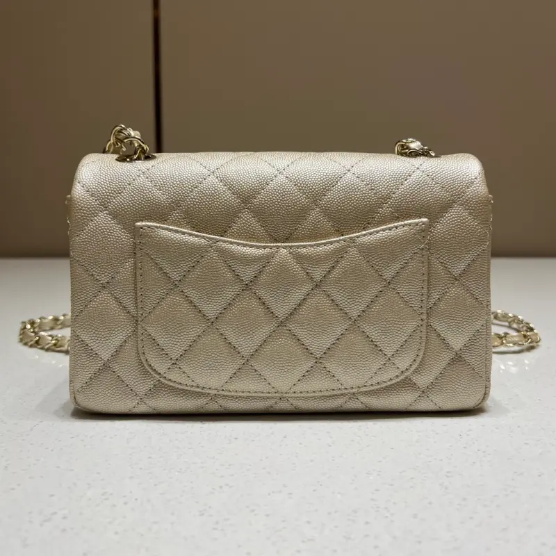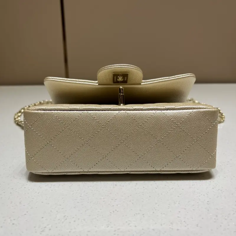 CF-Large Mini 20cm-Fine Spherical Caviar Leather-Champagne Gold Light Gold Buckle
