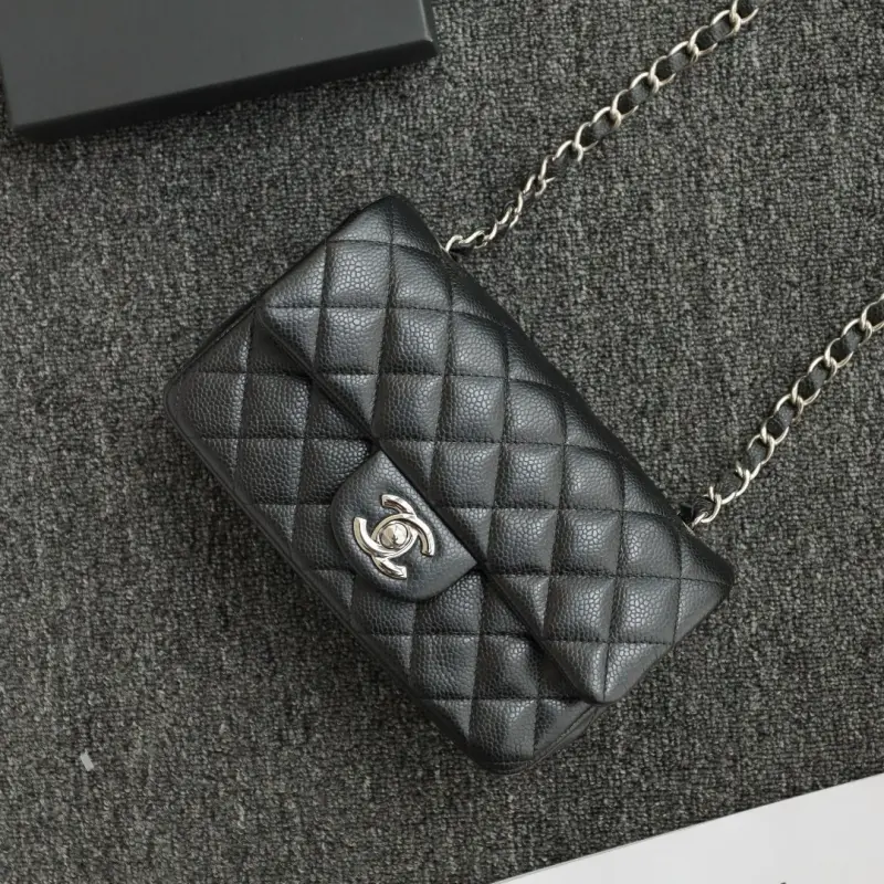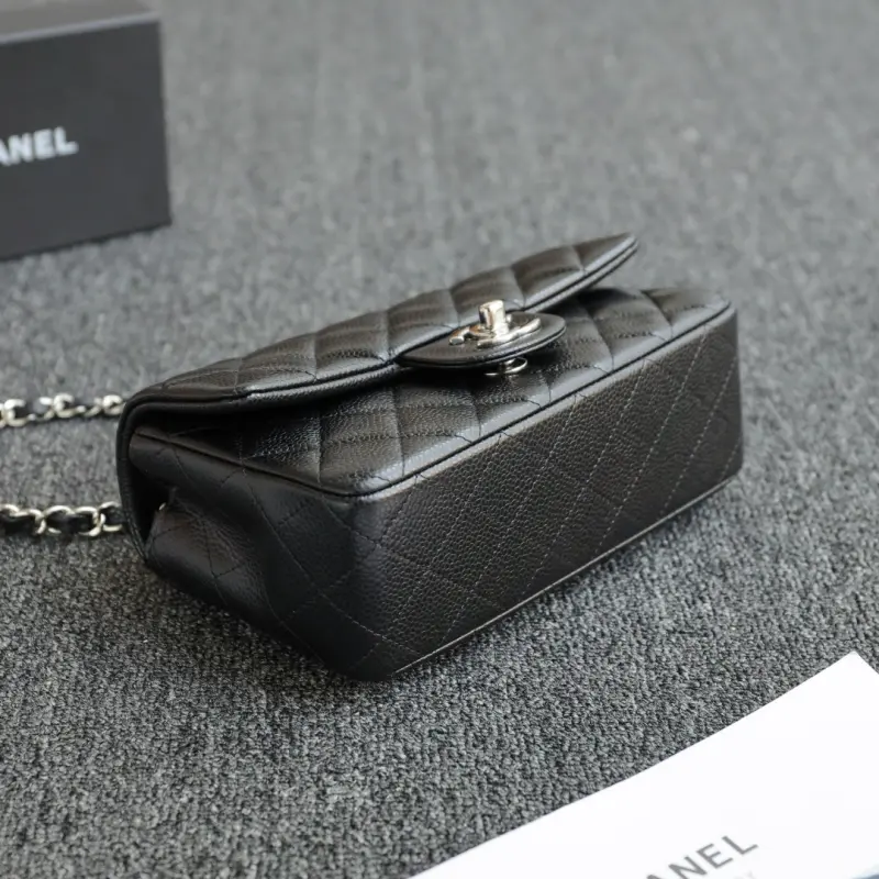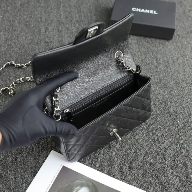 CF-Large Mini 20cm-Caviar Cowhide-Black Silver