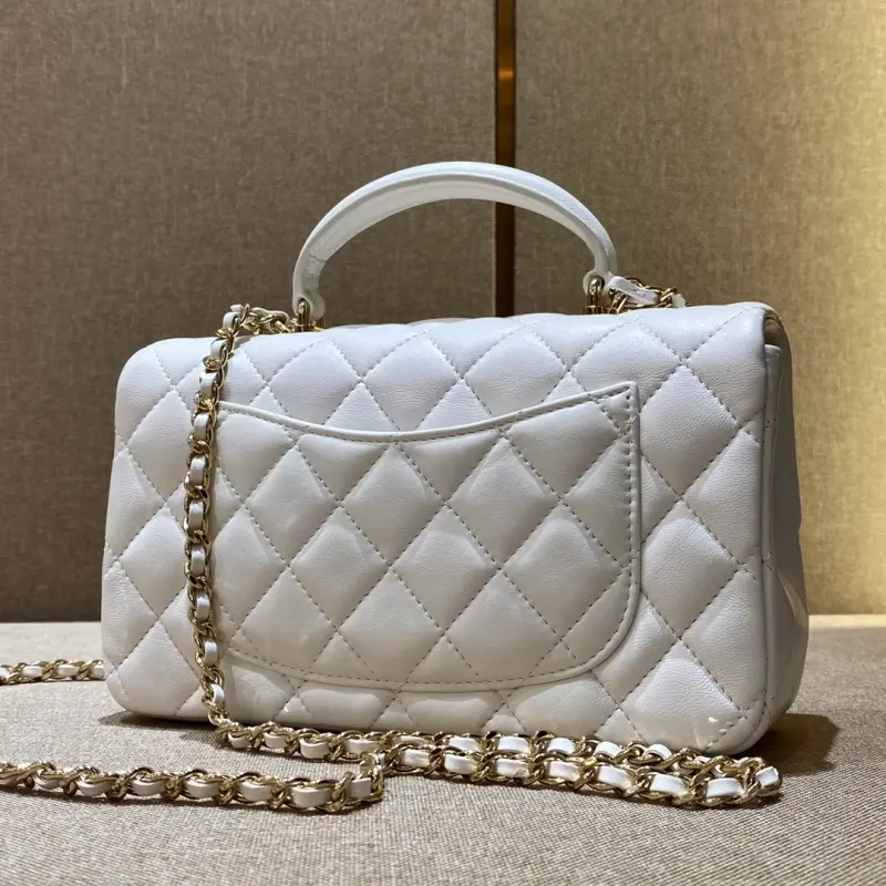The CF mini handle lion bag, in white lambskin with champagne gold hardware, is truly breathtakingly beautiful. This season, it features a lion pendant, which doesn’t feel superfluous at all, but rather adds a touch of elegance and artistic flair. Dimensions: 20x12x7cm