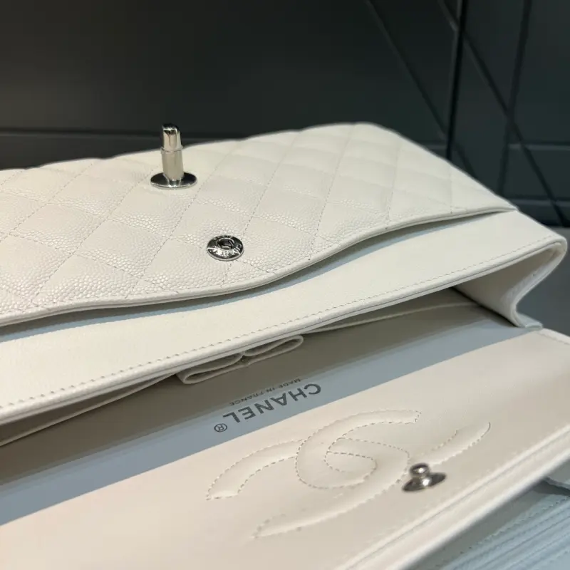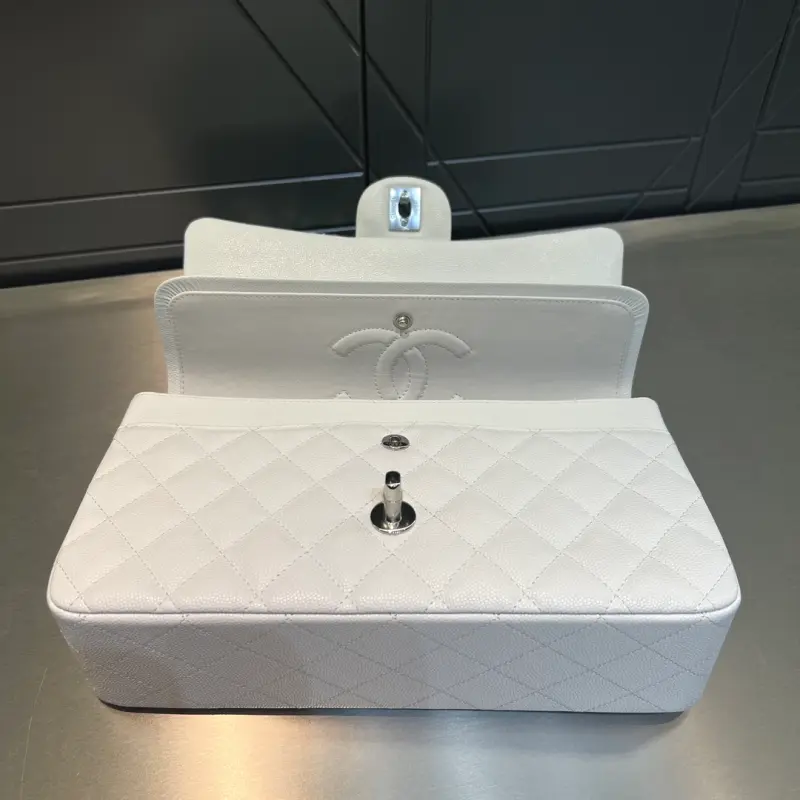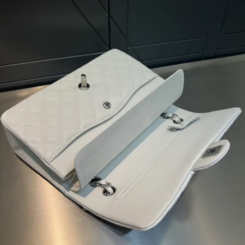 CF-Medium 25cm-Fine Spherical Caviar Leather-Uncut Edge-Pure Silver Buckle