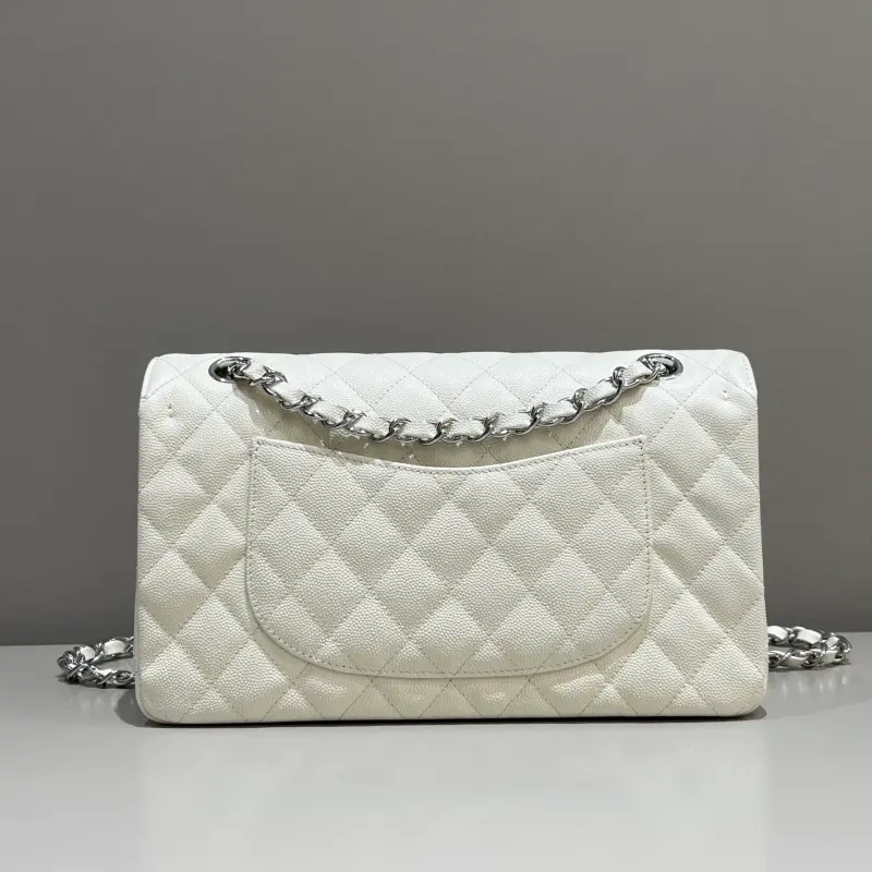CF-Medium 25cm-Fine Spherical Caviar Leather-Ivory Silver Buckle