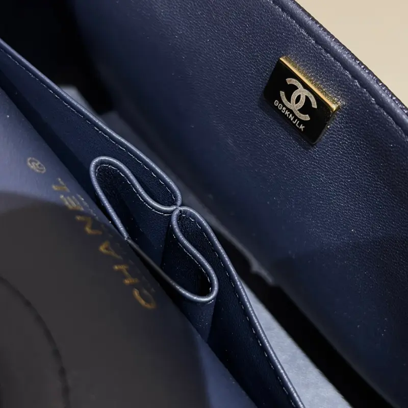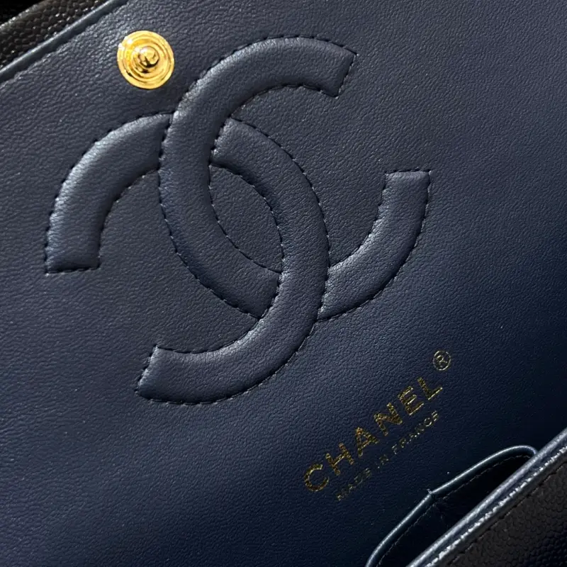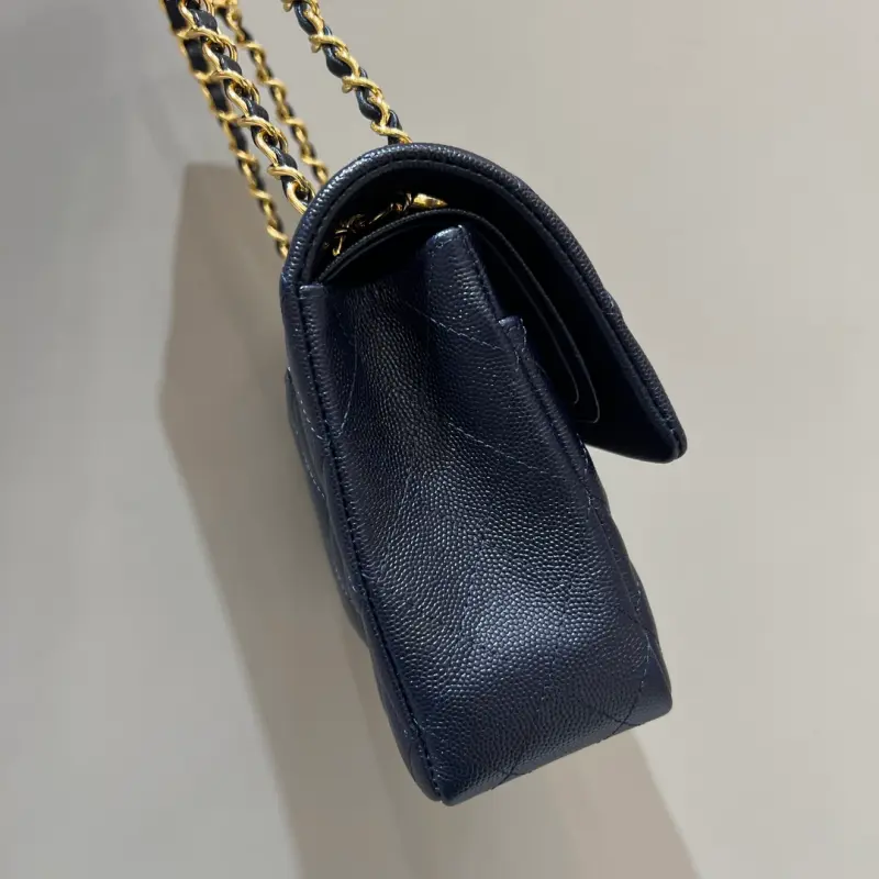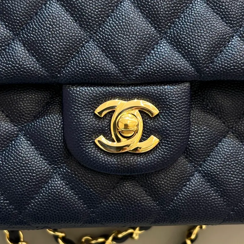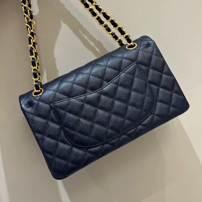 CF-Medium 25cm-Caviar Cowhide-Uncut Edge-Dark Blue Gold Buckle