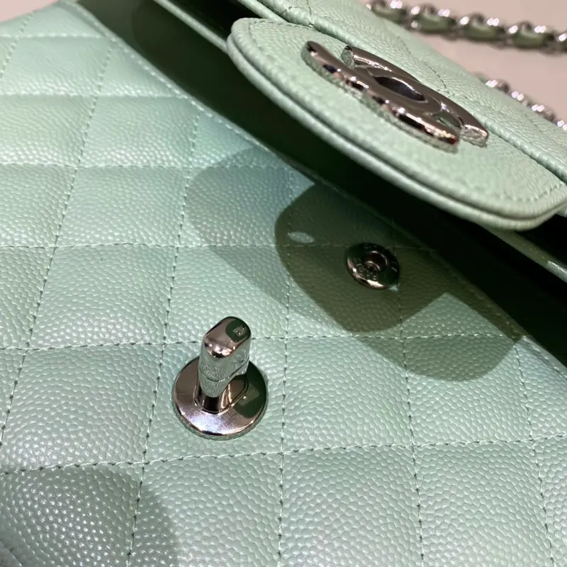 CF-Medium 25cm-Fine Caviar Cowhide-Matcha Green Silver Buckle