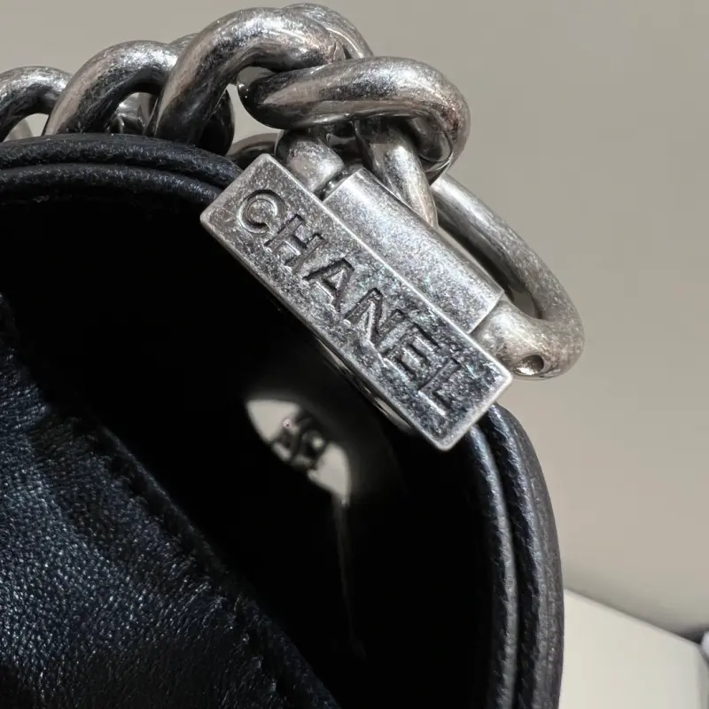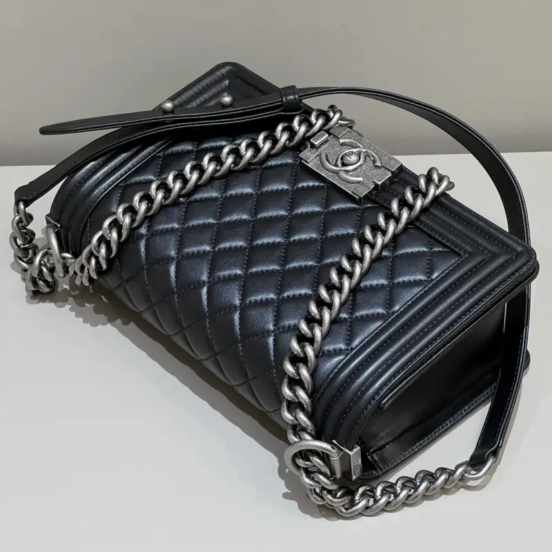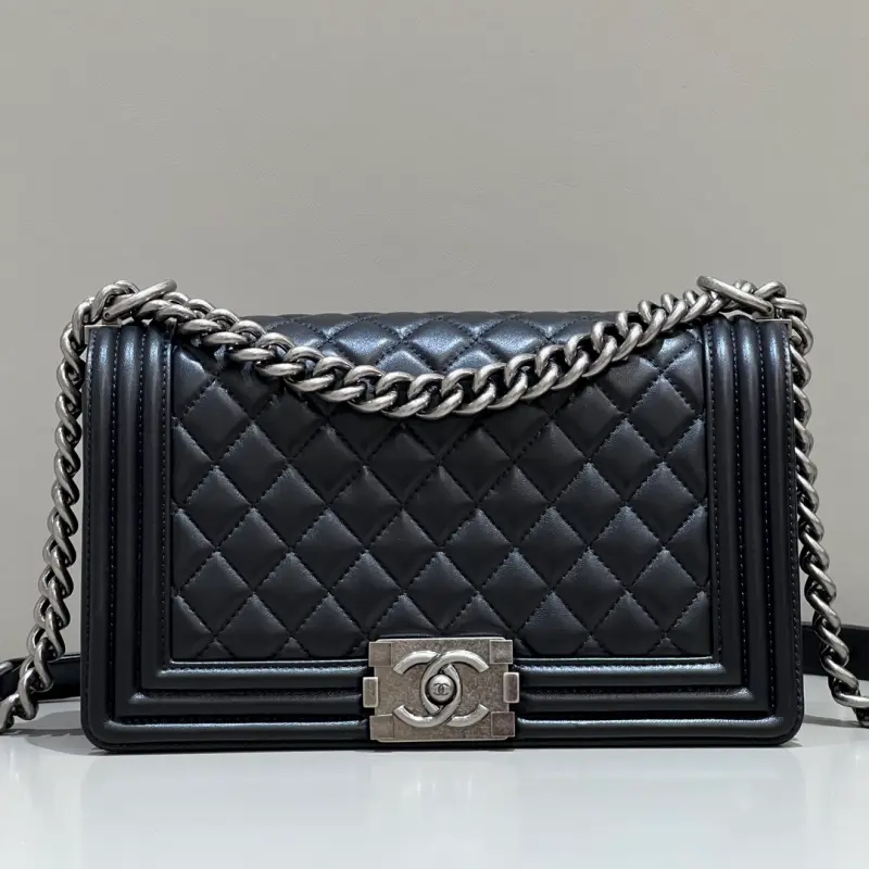 Leboy-Medium 25cm-Original Lambskin-Black Antique Silver Buckle
