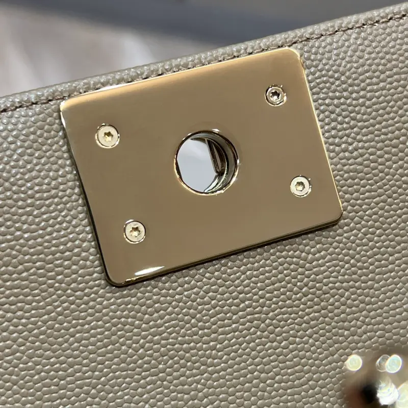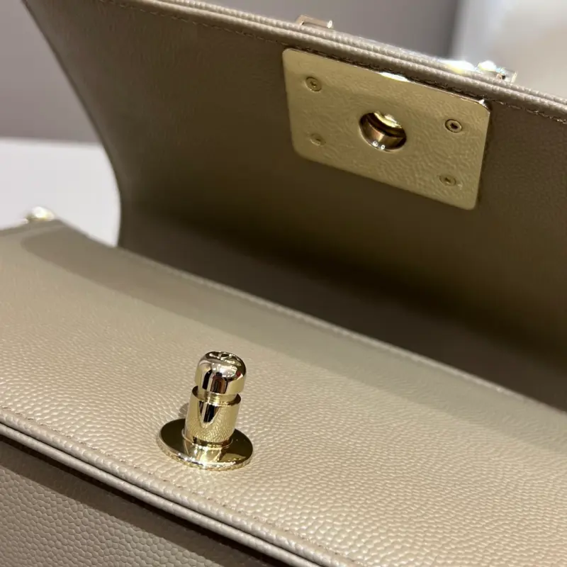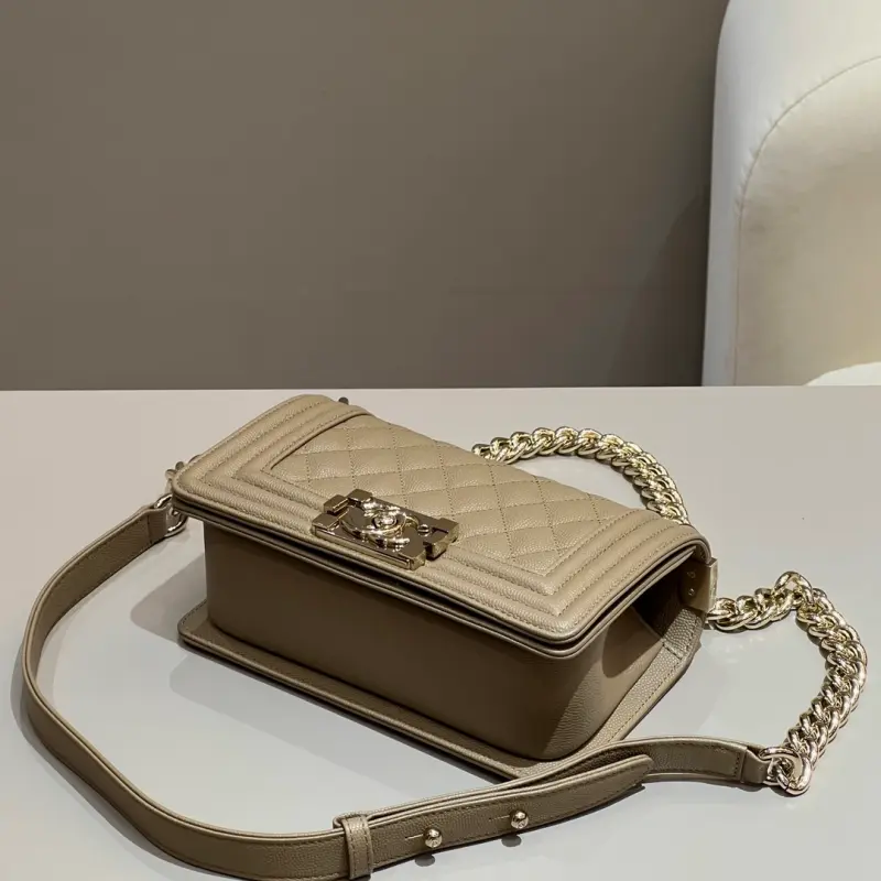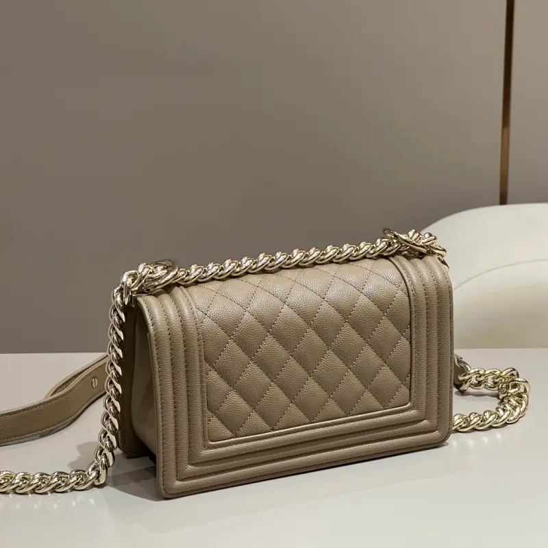 Leboy-Small 20cm-Fine Spherical Caviar Leather-Dark Rice Milk Tea Light Gold Buckle