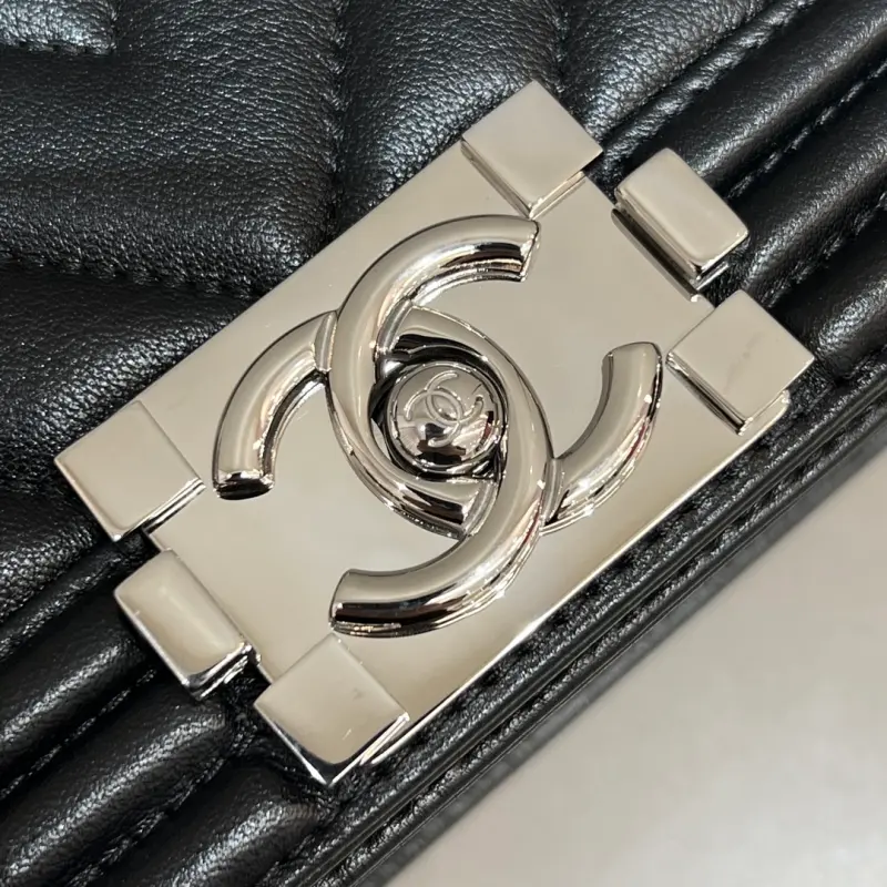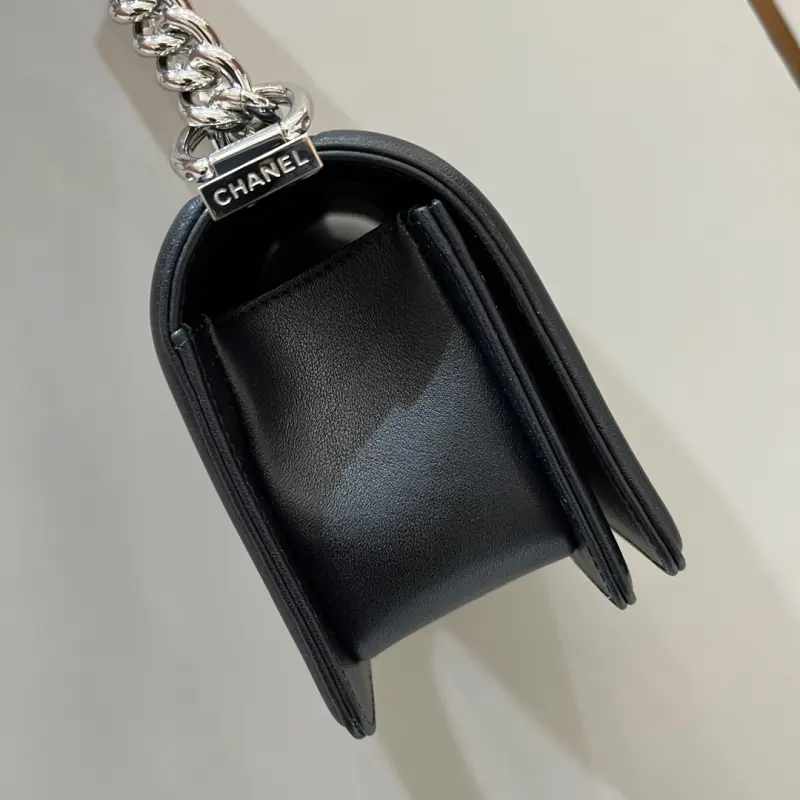 Leboy-Small 20cm-Big V Fetal Cowhide Black Bright Silver Buckle