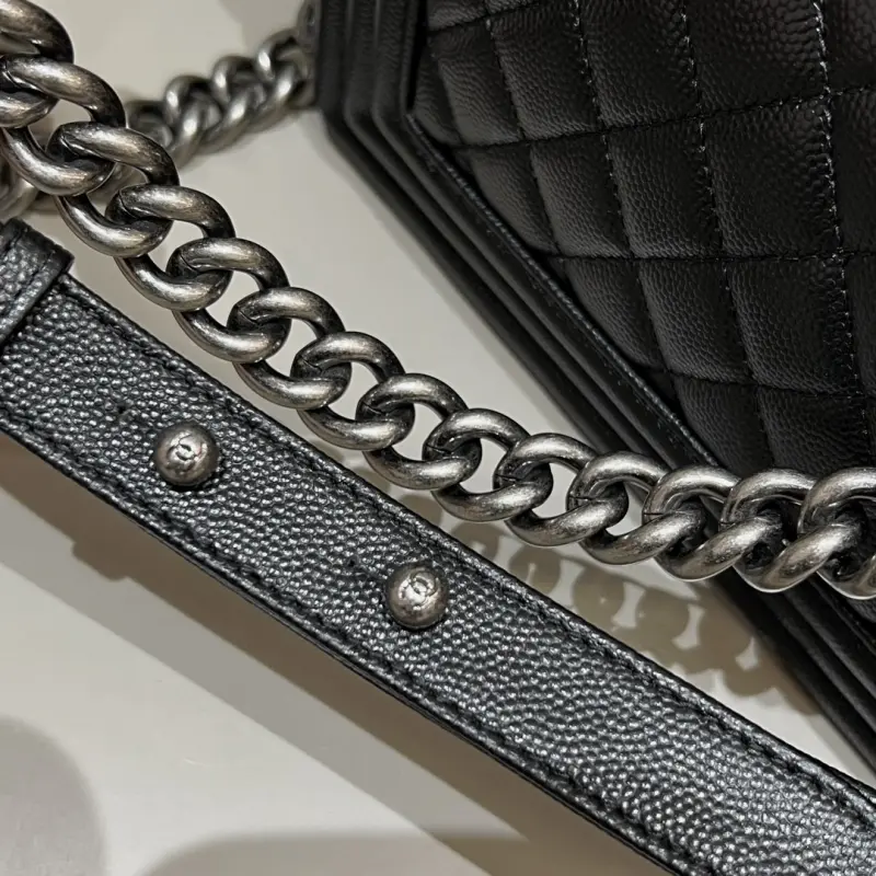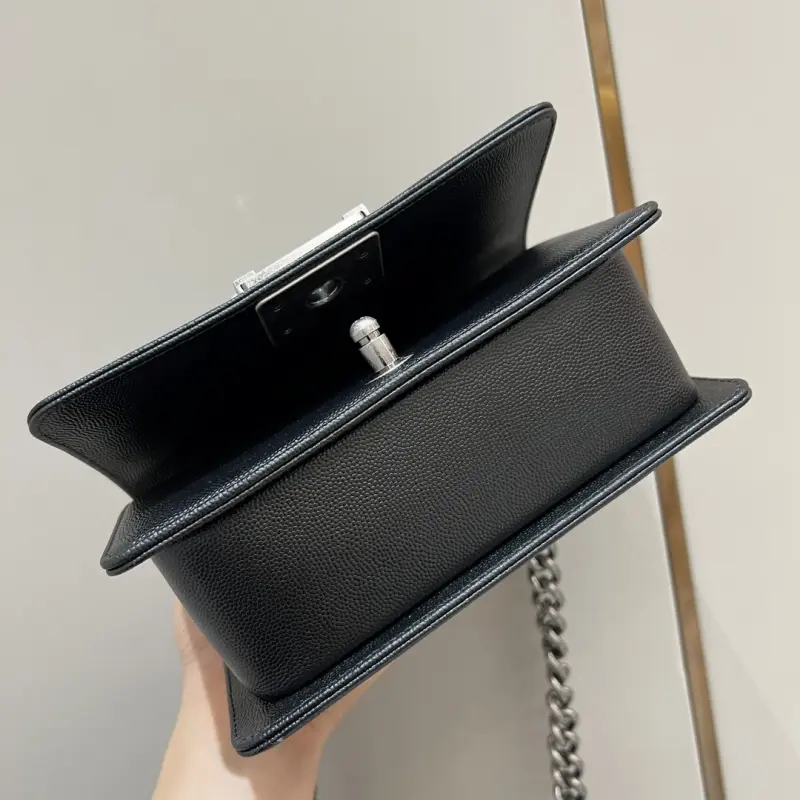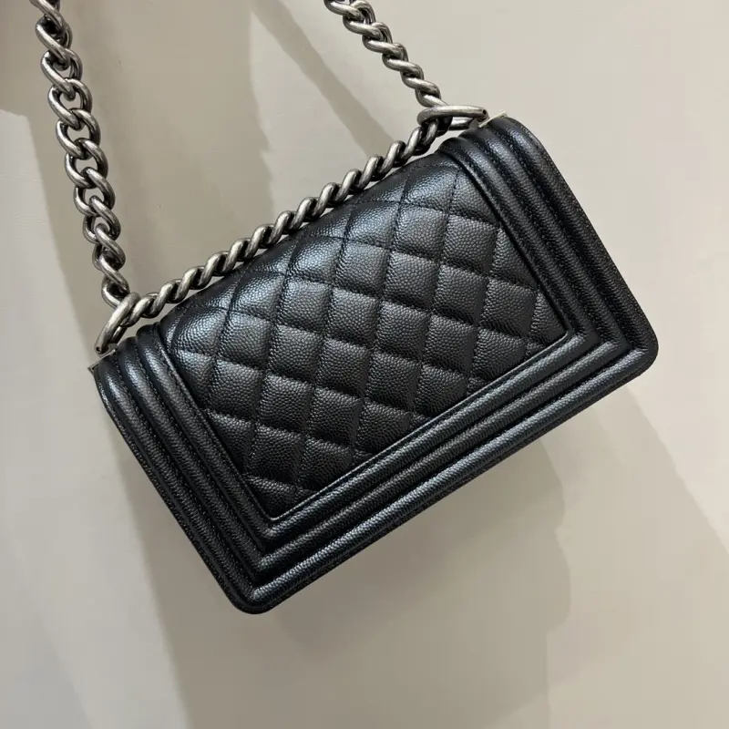 Leboy-Small 20cm-Fine Caviar Cowhide-Black Antique Silver Buckle