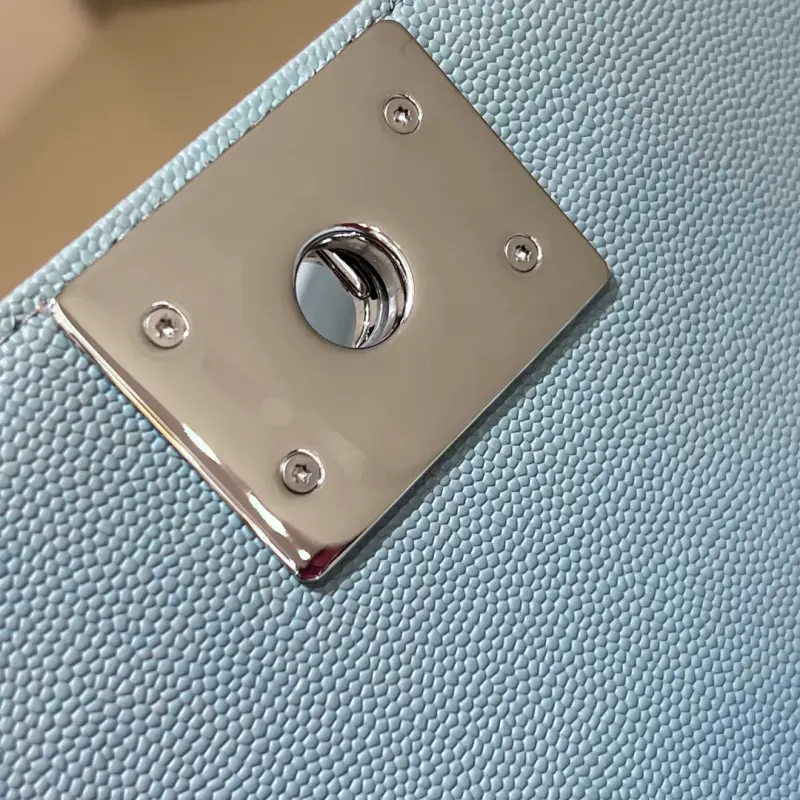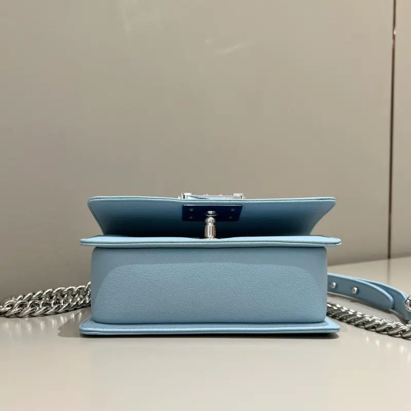 Leboy-Small 20cm-Fine Caviar Cowhide-Light Blue Bright Silver Buckle