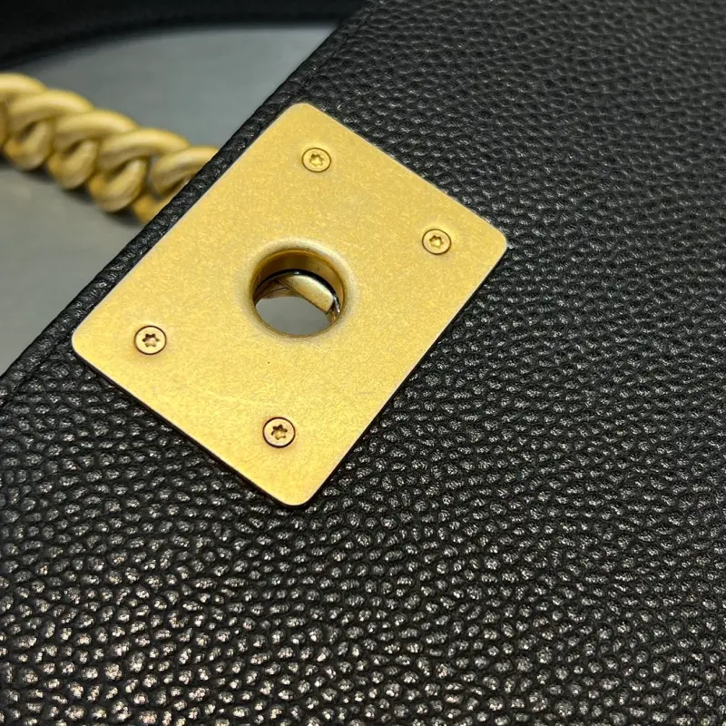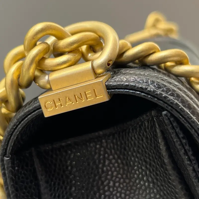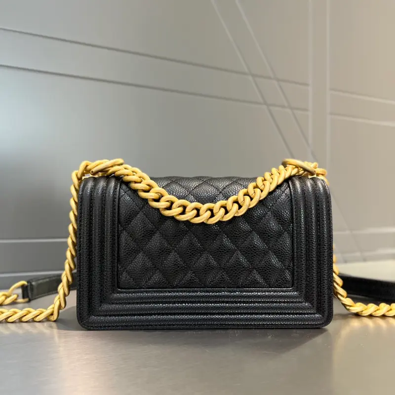 Leboy-Small 20cm-Classic Caviar Leather-Black Nostalgic Gold Buckle