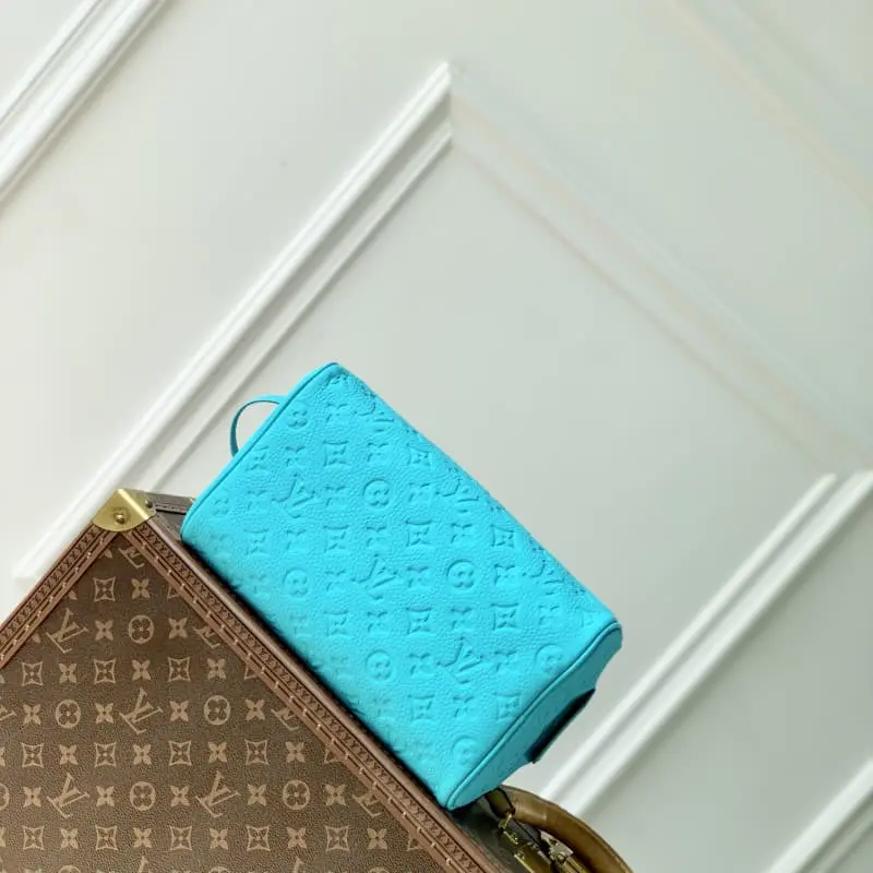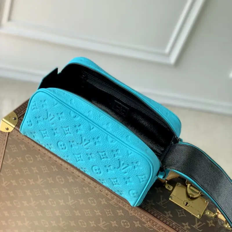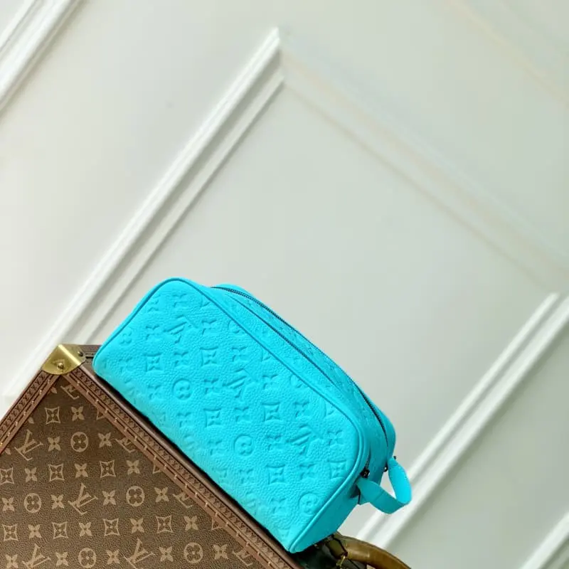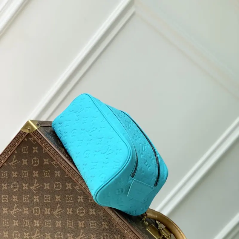 The M11482 Embossed Series toiletry bag is made of Monogram Eclipse Reverse canvas with a striking border around the edges and leather handles, which can be hung on a hook. The wide mouth design and washable fabric lining highlight functional considerations and make it a great choice for storing toiletries. 28 x 15 x 16.5 cm (length x height x width).