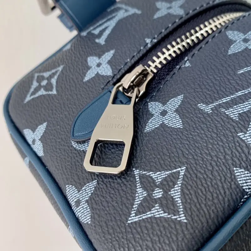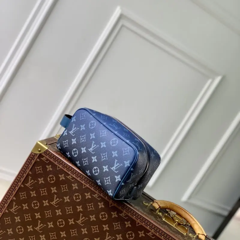 M11559 Blue This Locker Dopp Kit toiletry bag is elegantly made of Monogram Gradient coated canvas, which cleverly depicts the gradual disappearance of the Monogram pattern. The wide mouth design and washable fabric lining make it easy to store. The wide adjustable handle is convenient for carrying by hand or hanging on a hook. 23 x 13 x 12 cm (length x height x width)