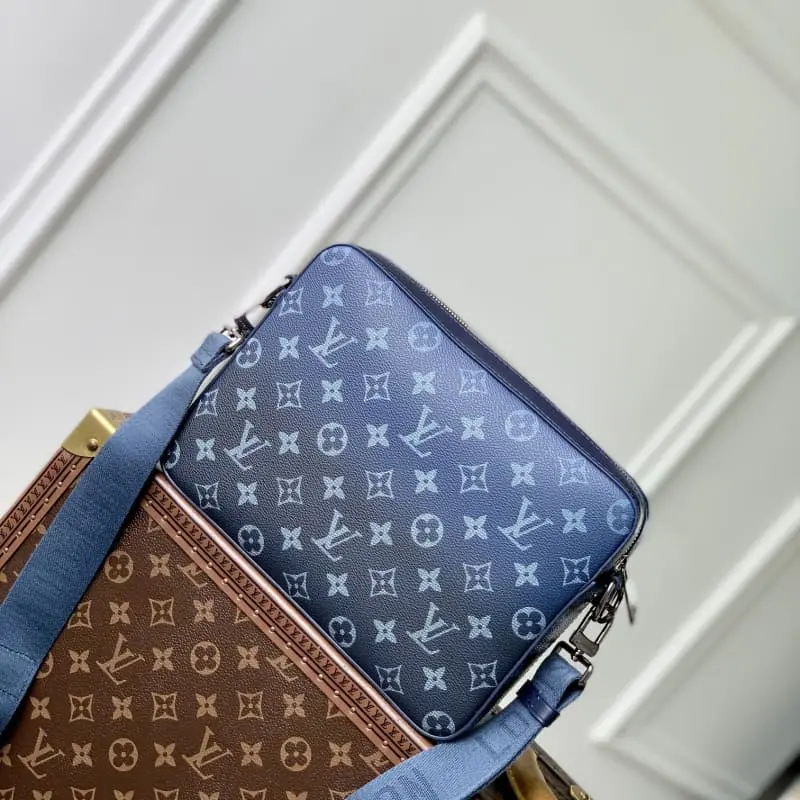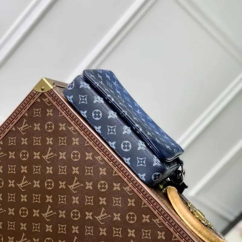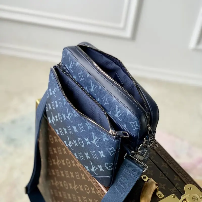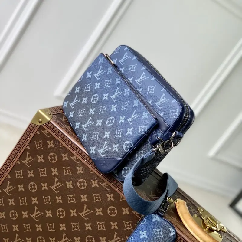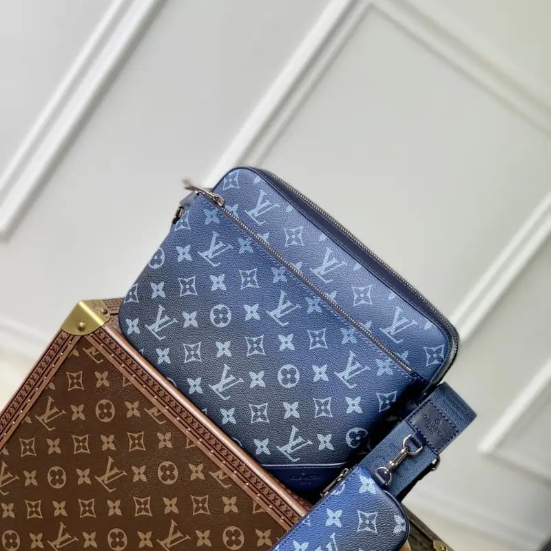 M11592 This Trio messenger bag is made of Monogram Gradient coated canvas. The full-length Monogram pattern gradually fades away to create a unique look. The coin pocket is fixed to the detachable shoulder strap with a D-ring. The detachable front pocket adds functional considerations. 25 x 18.5 x 7 cm (length x height x width)