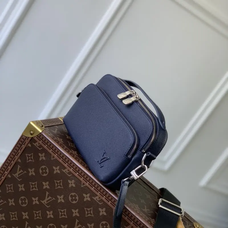 M11657 Dark Blue This compact Avenue messenger bag is made of Taga cowhide to add a unique personality to the briefcase. The sleek design exudes a modern feel with top handles, palladium hardware and webbing shoulder strap details. The bag is particularly practical with a main zippered compartment, front pocket and internal patch pocket. 22.5 x 15.5 x 7.5 cm (length x height x width)