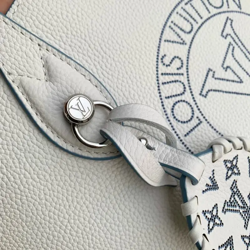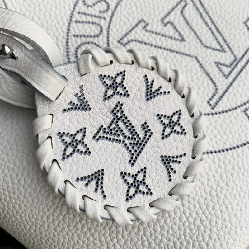M11734 Blossom Small Tote Bag Made from soft perforated calfskin leather, the front is embellished with a perforated LV Circle pattern and a removable braided leather LV decoration. Use the handle or the removable and adjustable leather shoulder strap to carry it by hand, elbow, shoulder or crossbody. 20 x 20 x 12.5 cm (length x height x width)