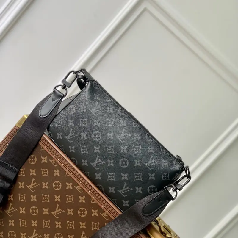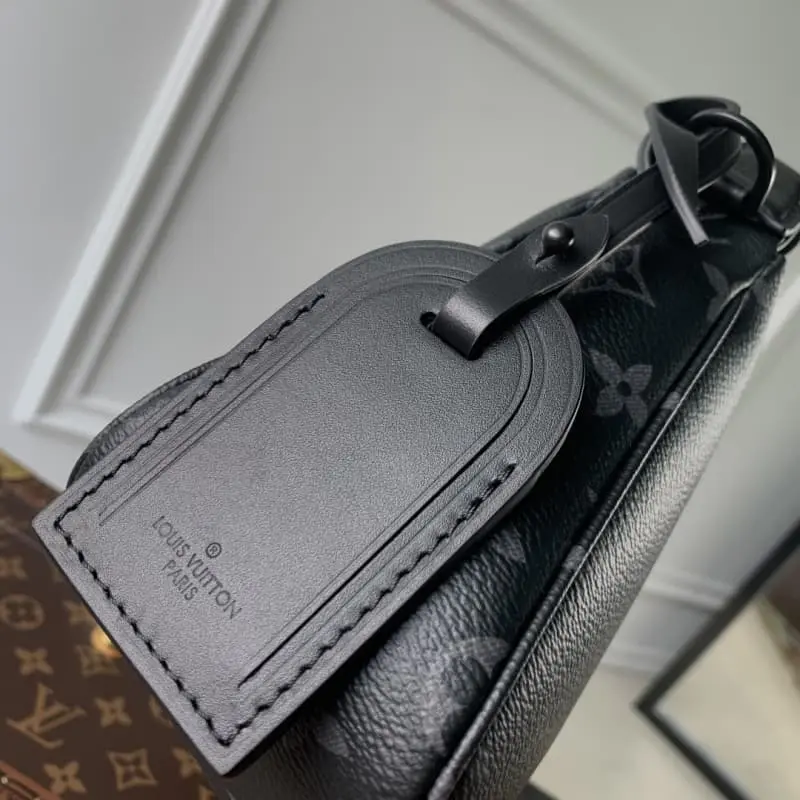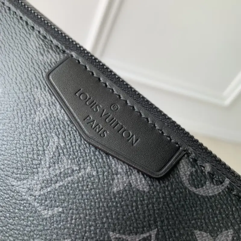 M11741 This Pochette Accessoire XL handbag is made of Monogram Eclipse coated canvas and reinterprets the classic design of the 1990s with handsome strokes. The ample zippered main compartment and inner pockets allow for orderly storage of brand names and metal parts to complete the exquisite details. The detachable and adjustable fabric shoulder strap allows shoulder and crossbody carrying. 28 x 16.5 x 9 cm (length x height x width)