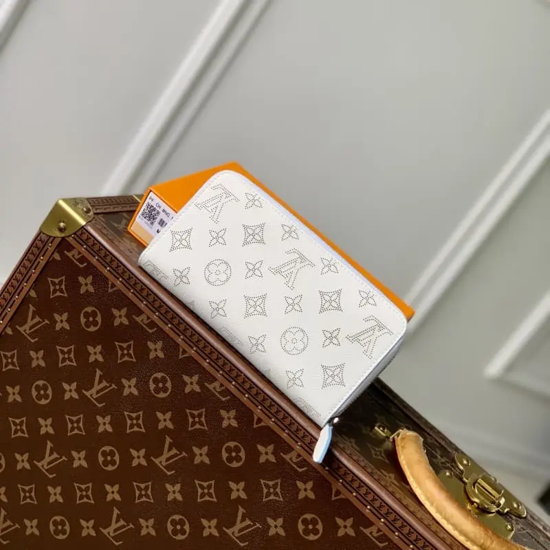 M11745 The perforations with contrasting colors highlight the letter pattern. This “zipper wallet” reinterprets the refined atmosphere with soft Mahina leather. Silver metal parts highlight the slender shape. The round zipper is easy to take out and the interior is easy to organize. The functionality of the bill pocket and coin pocket with zipper and 12 card slots is also attractive. 19.5 x 10.5 x 2.5 cm