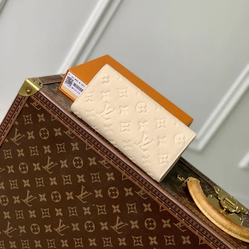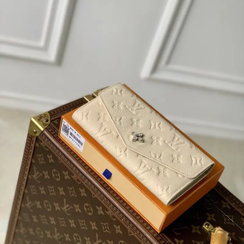 M12172 White Part of the LV ski collection, this “shiny” version of the Sarah Wallet is also ideal for alpine escapes and days in the city. The envelope-inspired design showcases the house’s signature Monogram Empreinte leather fastened with a press clasp embellished with a single Monogram flower. Inside, there are multiple pockets and compartments for bills and coins plus 16 card slots. Dimensions: 19 x 10.5 x 2 cm