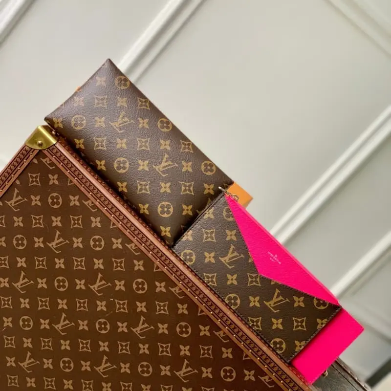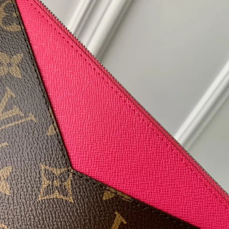 M12359 Rose Red Kirigami Pocket Universal Wallet, this Kirigami Pocket Universal Wallet is named after the Japanese paper cutting art. The fashionable wallet is made of iconic Monogram coated canvas combined with grain leather lining to add bright colors. Designed with a removable zippered compartment and a removable flat pocket with six business card slots, it’s perfect for storing important documents. 23 x 11 x 2 cm (length x height x width)