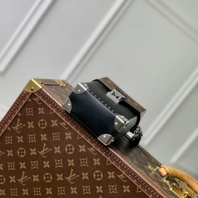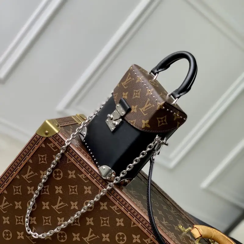 M12362 The LV Vibe family introduces a new Camera Box bag. Glossy cowhide leather cuts out a unique shape. Monogram details enhance the classic style. The S-lock buckle and metal corners subtly reveal the brand’s identity. 12.5 x 17.6 x 6 cm (length x height x width)