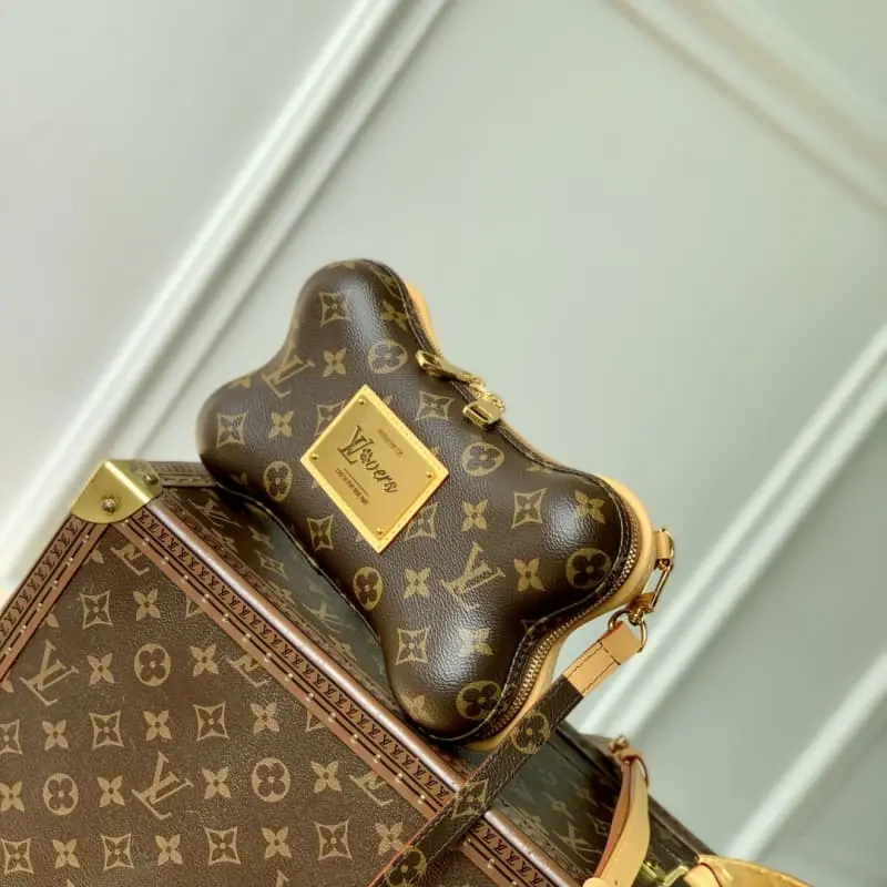 The M12615 Bone mini bag is made of Monogram coated canvas. The inner nameplate features the LV Lovers logo designed by Pharrell Williams for the last season’s collection, and the cute paw print injects fun elements. The detachable and adjustable shoulder strap is decorated with Monogram pattern on one side and delicate leather on the other. 14 x 6 x 24 cm (height x width x length)