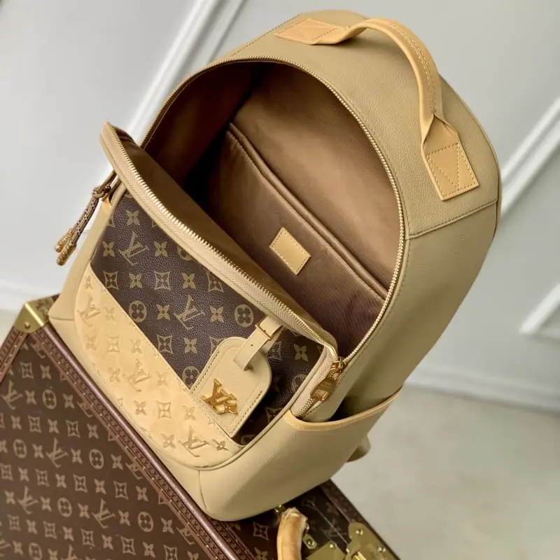 The M12624 Outdoor backpack is made of suede embossed grain leather and Monogram canvas, combining elegance with a sporty feel. Rounded zipper opening Spacious main compartment Zippered front pocket and side pockets highlight functionality Cord zipper pulls add a modern touch. 44 x 19 x 31 cm (H x W x L)
