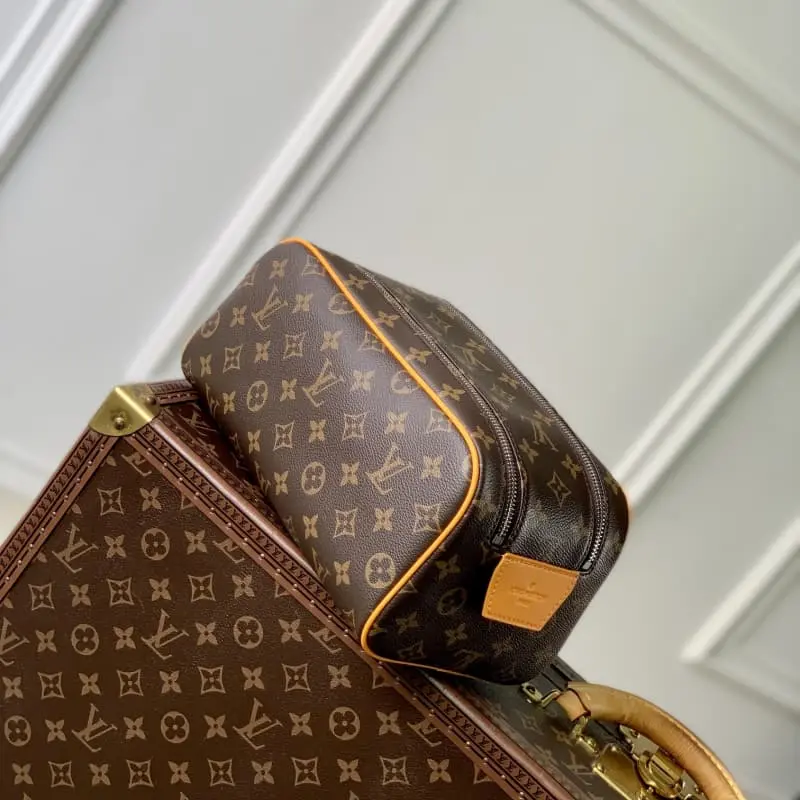 M12641 Yellow This Dopp Kit is made of fine-grained Taurillon Monogram leather and is an elegant way to carry toiletries and other personal items. This spacious bag features a double zipper closure and washable lining, combining style and functionality. This accessory makes a thoughtful gift or complements any travel bag. Dimensions: 28 x 15 x 16.5 cm.