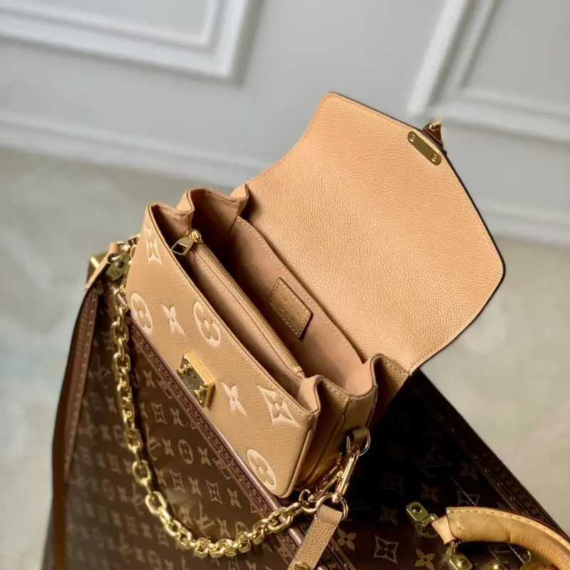 The M12735 Brown Pochette M??tis East West handbag is made of Monogram Empreinte leather with inner compartments, central zipper pocket and rear zipper pocket for neat storage. The iconic S-lock lock shines with metallic luster, showing the fusion of traditional craftsmanship and modern details. 21.5 x 13.5 x 6 cm (length x height x width)