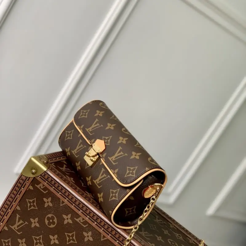 M13566 This Pochette Camille bag is made of Monogram canvas, a nod to the original design that debuted at the Lbag Spring/Summer 2000 fashion show. The S-Lock clasp, LV Circle logo on the chain and contrasting VVN leather trims represent the brand’s classic elements. The flexible and easy-to-wear configuration is suitable for crossbody, shoulder or hand-carrying. 11 x 6 x 20.5 cm (H x W x L)