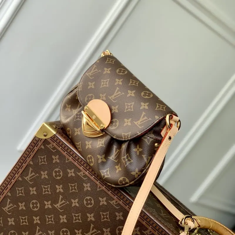 M13617 This Sunset bag features Monogram canvas. Lustrous hardware and Monogram details elevate the classic style. The ample structure allows for easy storage of day and night essentials. The branded buckle adds a striking touch. Dimensions: 27 x 18 x 3