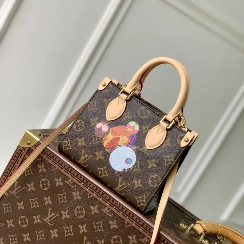 M13668 Lbag x Takashi Murakami re-edition series interprets the exquisite version of OnTheGo handbag with a playful touch. Monogram canvas and cowhide leather establish the brand’s classic style. The cute and lively panda image drawn by Takashi Murakami is transformed into the front and back prints. The removable and adjustable shoulder strap provides a variety of carrying options. The zippered inner patch pocket allows personal items to be carried safely. 15 x 8.5 x 18 cm (height x width x length)