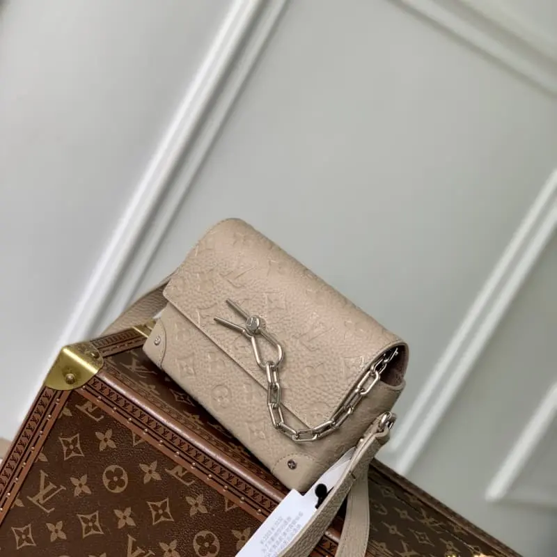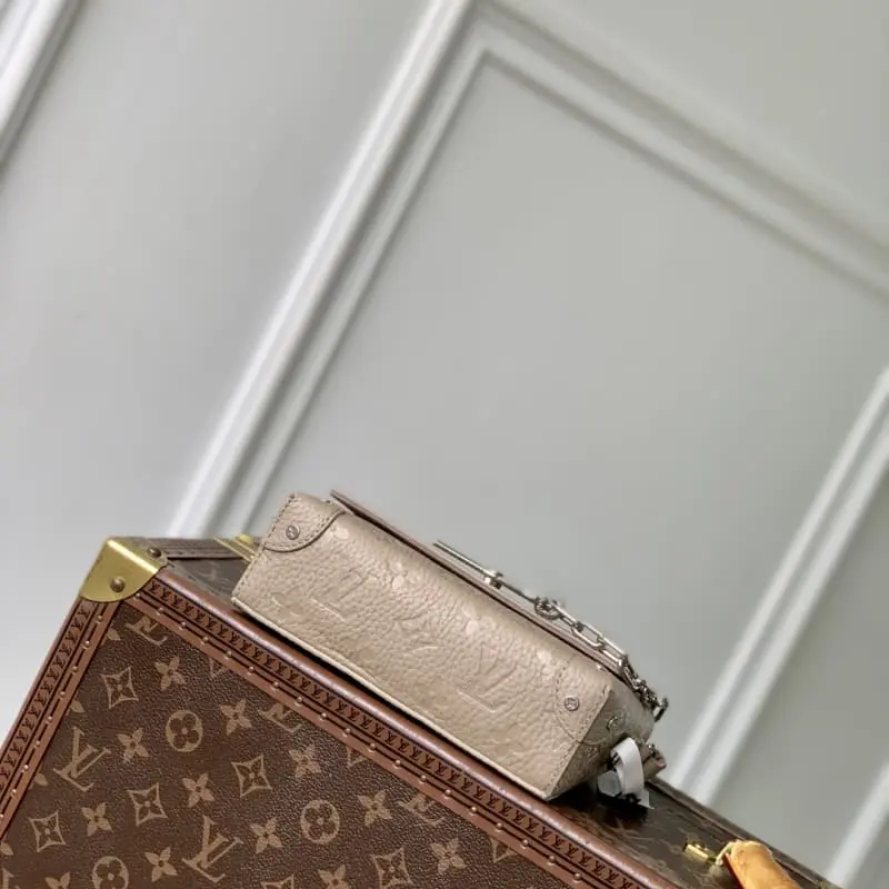 The M13889 new grey Monogram Taurillon leather complements classic elements such as the Steamer style chain. Comes with an adjustable shoulder strap for easy carrying. The zippered compartment has ample storage space and the front pocket flap and magnetic closure ensure that items are kept safe. 18.0 x 11.0 x 6.5 cm (length x height x width)