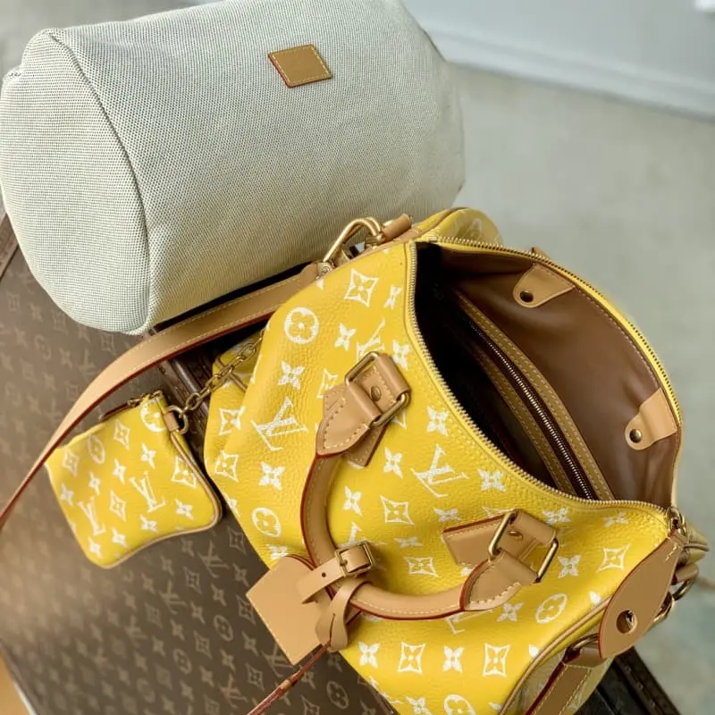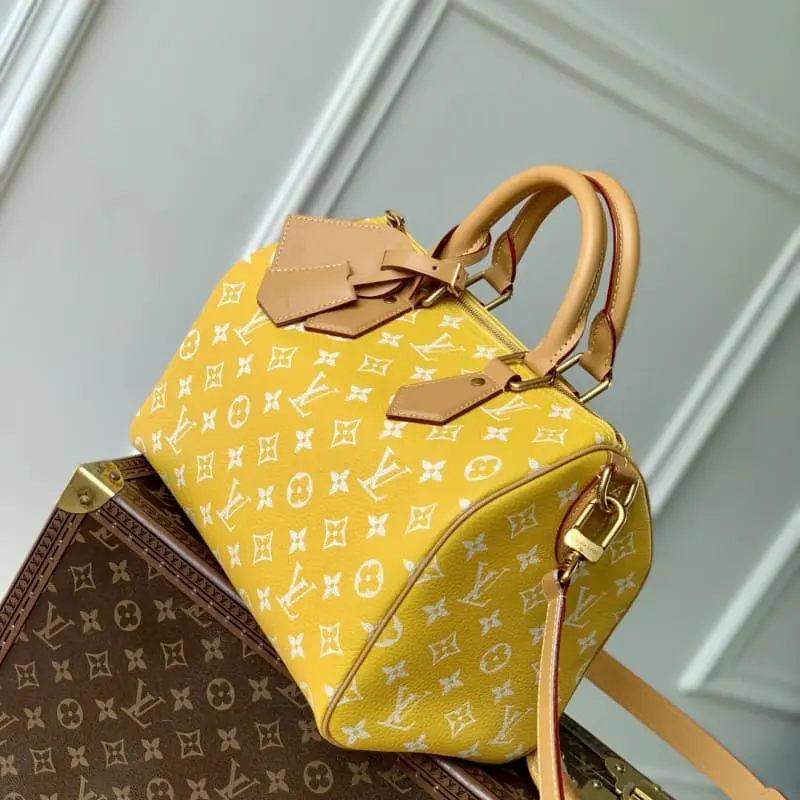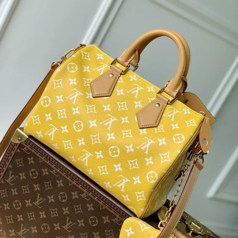 The M13914 yellow Speedy P9 Bandouli??re 30 handbag is carefully crafted from cowhide leather printed with the classic Monogram pattern. The size design is just right: it is compact and light, but large enough to hold daily needs. The handbag is exquisitely crafted in every detail, from the vintage side locks to the luxurious sheepskin lining, every detail reflects the brand’s unremitting pursuit of quality. In addition to the top handle design, it is also equipped with a detachable shoulder strap to provide a variety of carrying methods. 22.5 x 18 x 32 cm (height x width x length)