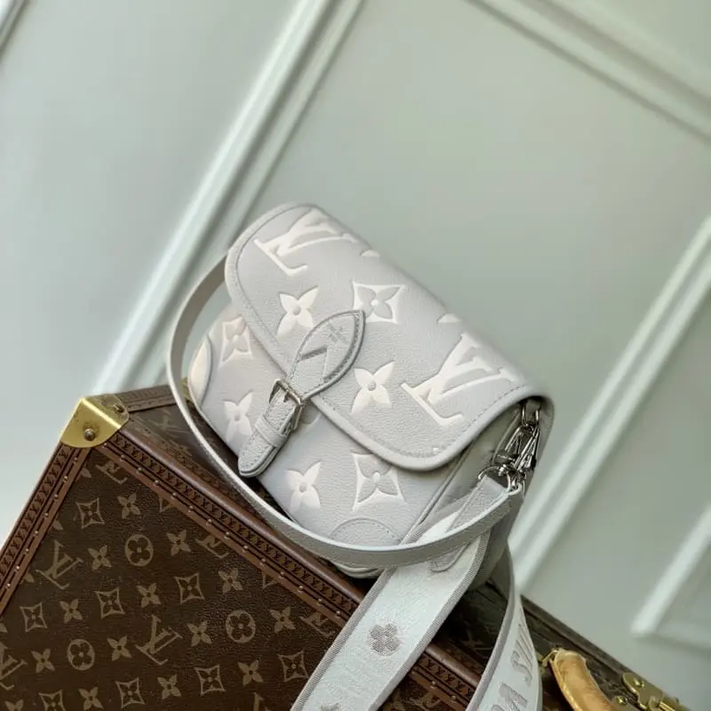 M14214 Taro Purple This Diane bag is made of Monogram Empreinte leather and embellished with dazzling metal parts, reinterpreting the classic design of the LV Milky Way series. The detachable fabric shoulder strap exudes a dynamic atmosphere, and the short leather shoulder strap achieves an elegant carrying style. 15 x 9 x 24 cm (height x width x length)