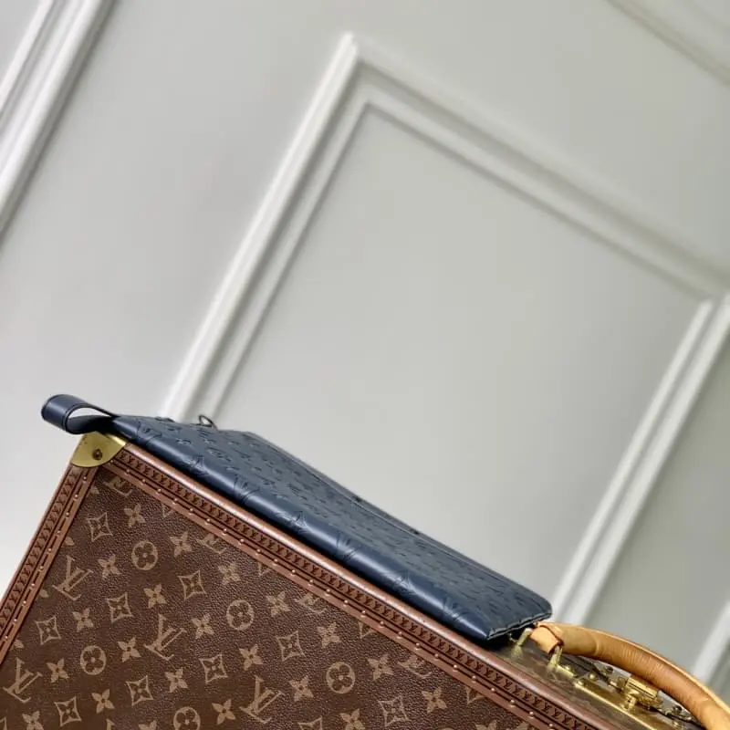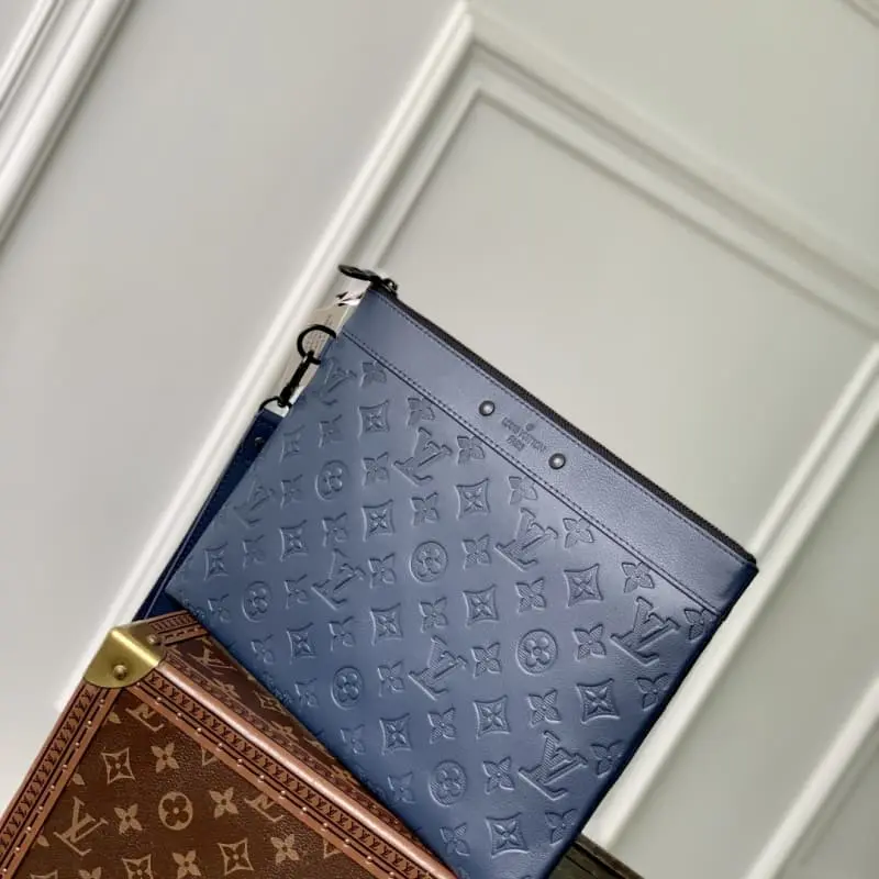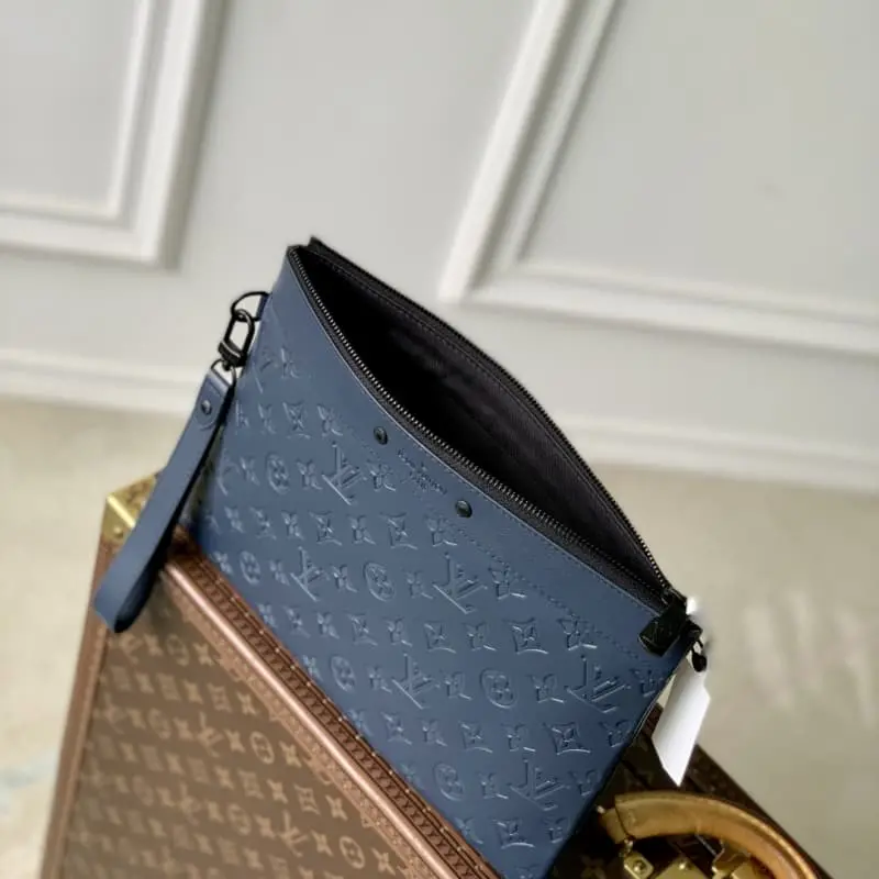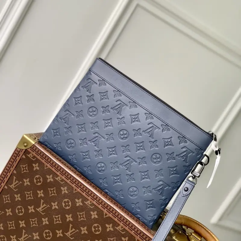 The M14914 embossed dark blue Pochette To-Go clutch is made from Monogram Shadow embossed leather and features a rivet label that subtly reveals the brand’s style. There is ample space for documents, small electronic devices and other personal needs, and the detachable wrist strap allows for convenient carrying, making it a trendy alternative to traditional handbags or briefcases. Dimensions: 30.0×21.5×1.0cm.