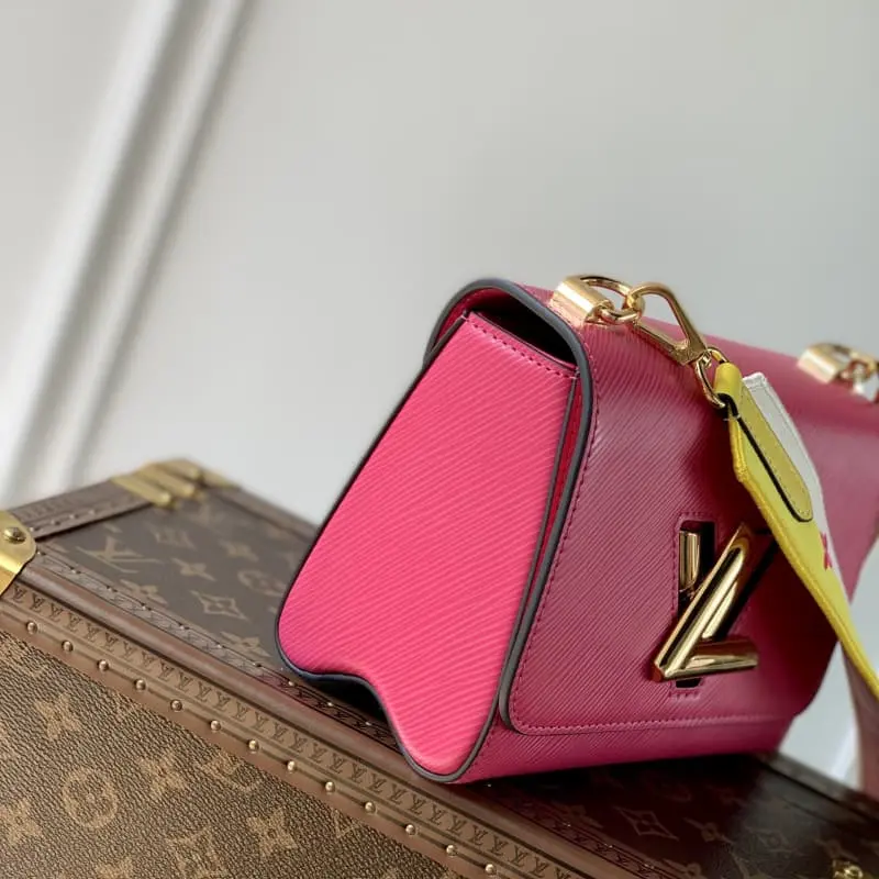 M20693 Rose Red This small Twist bag is full of energy. The dynamic lemon-shaped charm can be opened from the top to become an accordion coin purse. The embroidered fabric shoulder strap comes in two colors. Dimensions: 19.0 x 15.0 x 9.0 cm (L x H x W)
