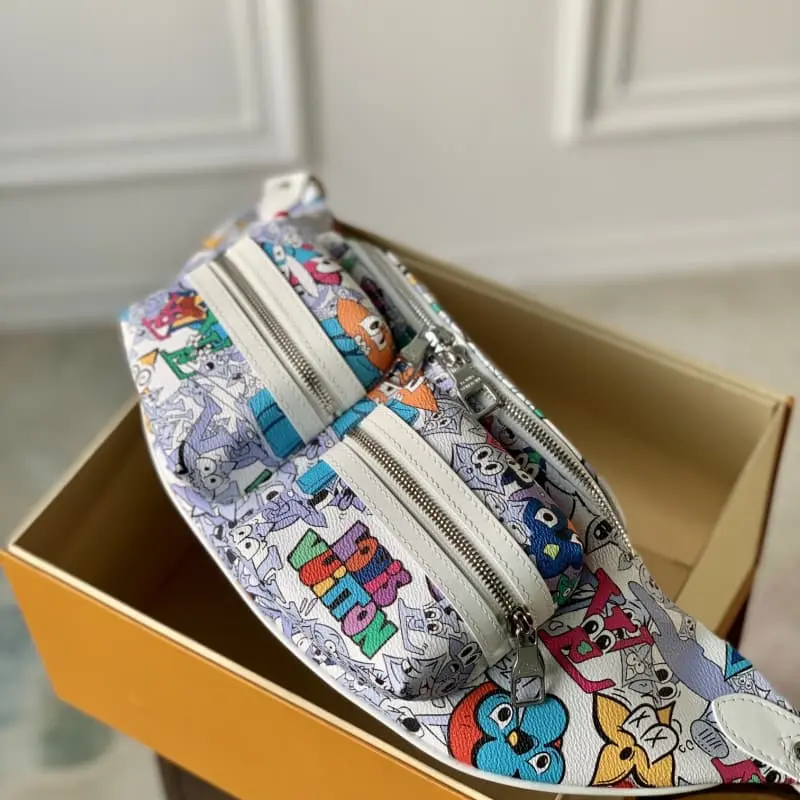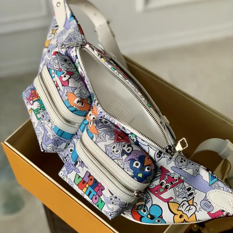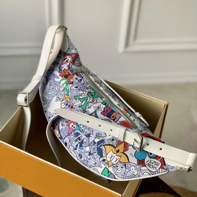 M21862 BUMBAG waist bag is made of classic Damier Graphite canvas with an adjustable belt. White flower street art graffiti waist bagoo[handshake][handshake]It can be carried with you whether it is casual shoulder or cross-body. The front and back zipper pockets can easily take out mobile phones, keys and cards while safely protecting items. Size: 50.0 x15.5 x4.0 cm