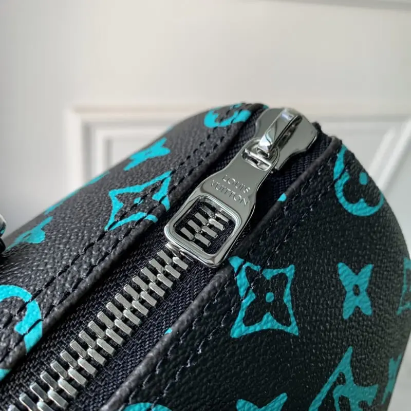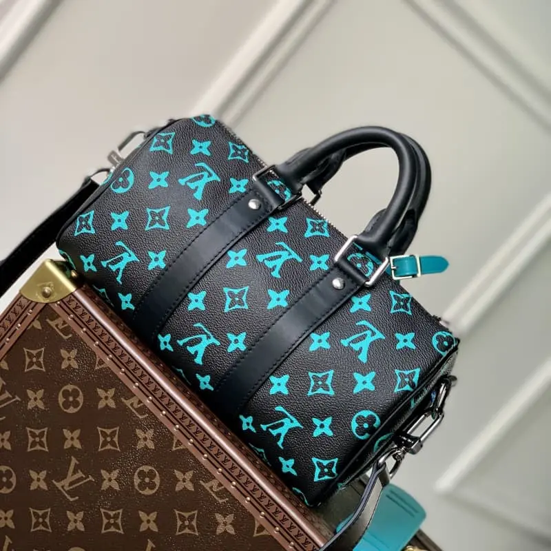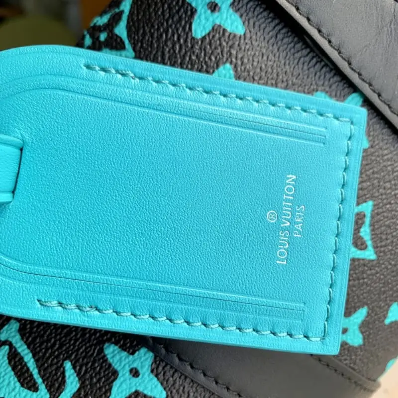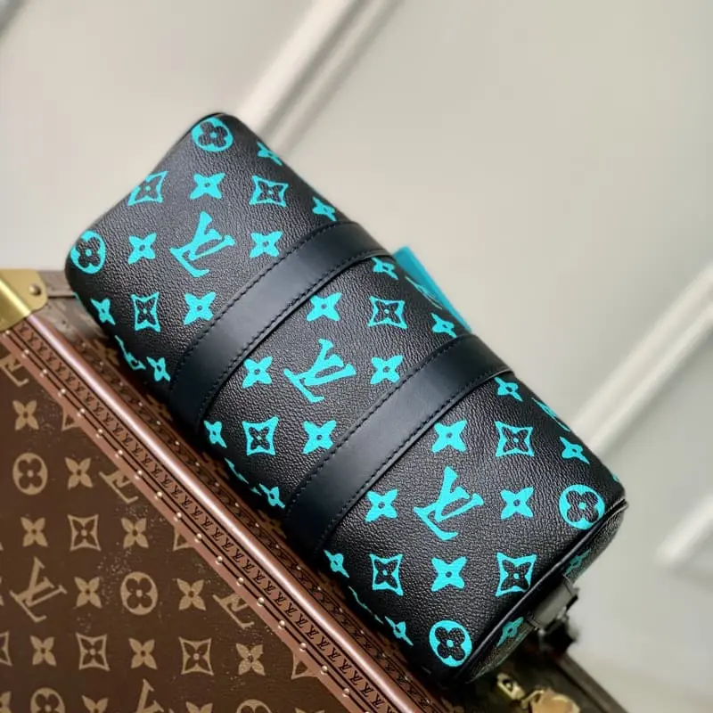 M21938 Blue and Green Men’s Pillow Bag Series This Keepall 25 handbag is made of Monogram Eclipse Reverse canvas, showing an elegant reinterpretation of Lbag’s classic pattern. The reinforced straps and leather nameplate continue the iconic elements of the Keepall series. The zipper closure allows personal items to be carried safely. Size: 25.