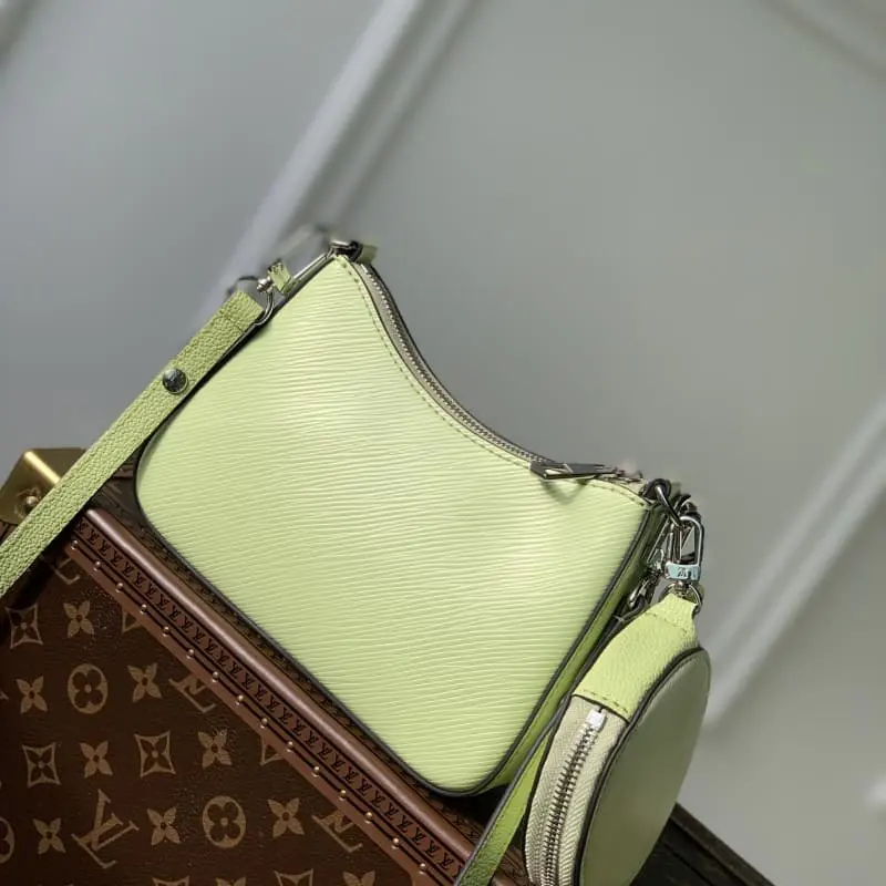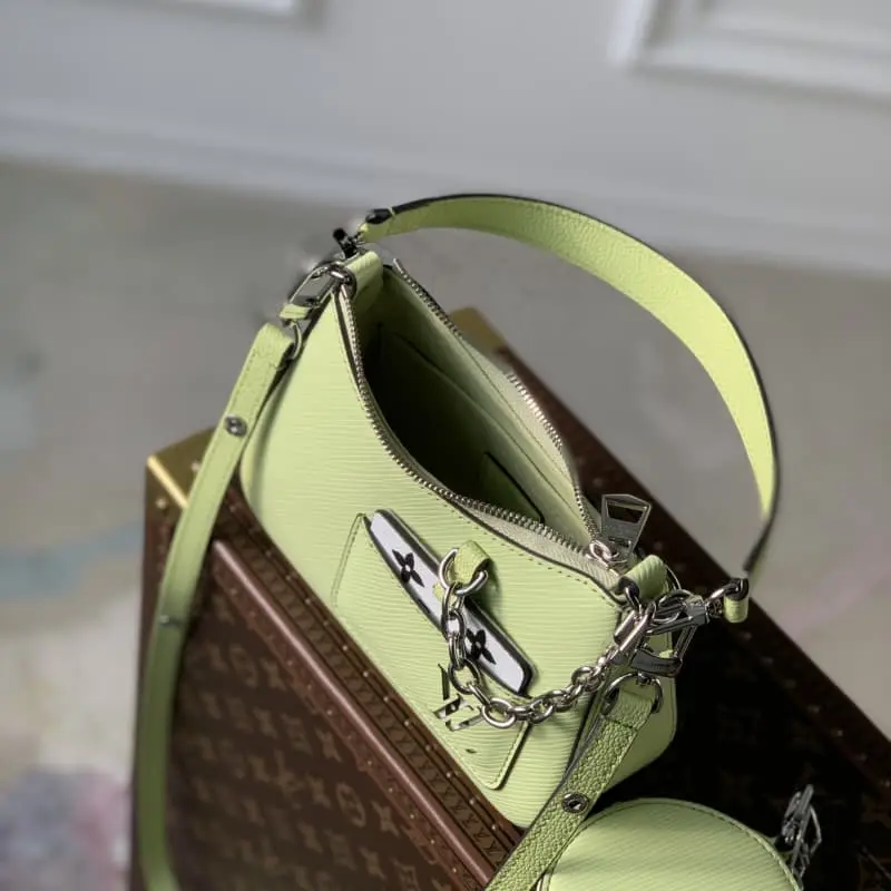 M22651 (20998 Apple Green) MARELLINI New Color The Marellini handbag uses Lbag’s iconic Epi leather to integrate the dynamic elements of the Marelle handbag into a more compact configuration. The round coin purse can be removed at will . The mirror fixed to the bag body by a chain is housed in the front patch pocket. Dimensions: 19 x 13.5 x 6.5 cm