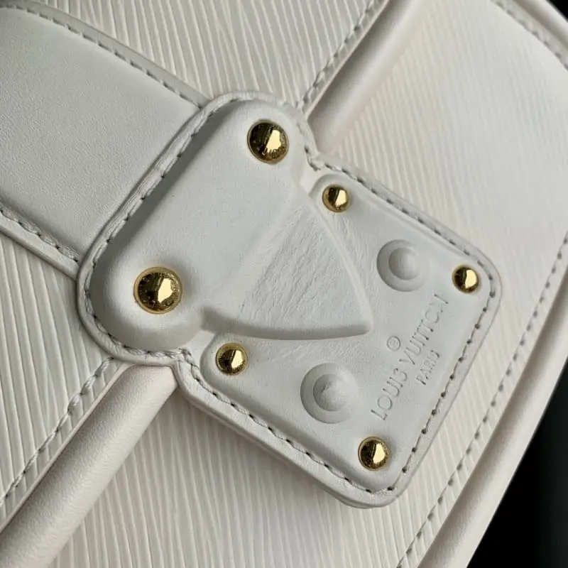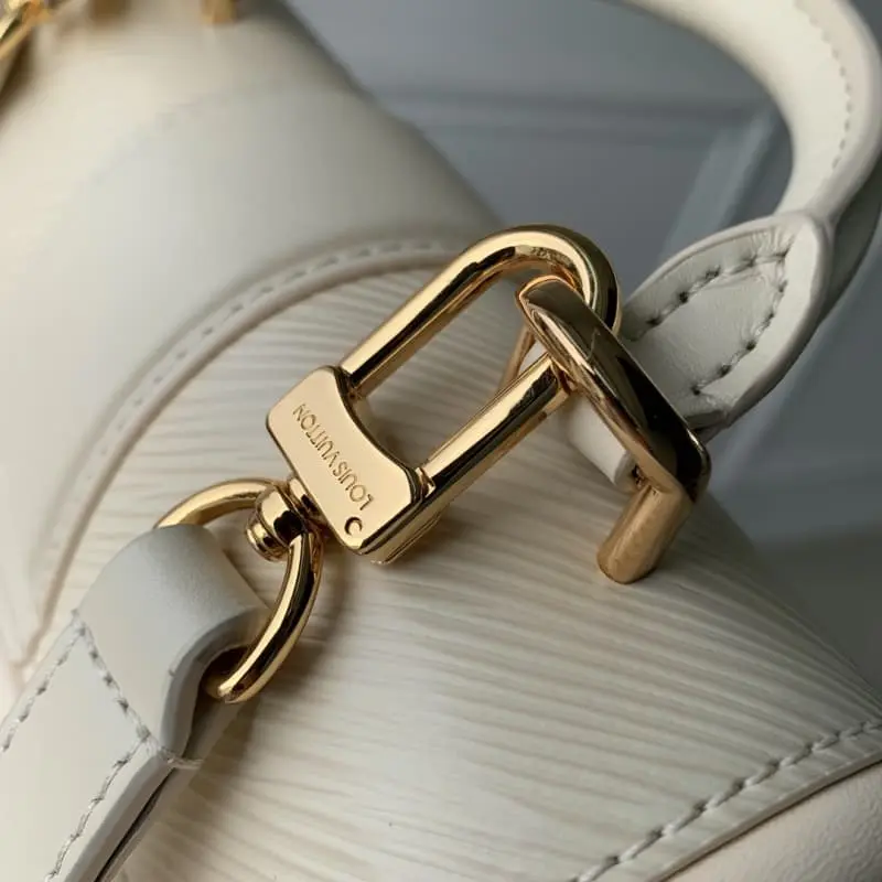 M22721 White This Hide & Seek bag is made of Epi leather with a bright hue. It has Toron rolled handles and leather wrapped S-lock clasp. It is a Lbag heritage design. The detachable shoulder strap is convenient for hand-carrying or cross-body, so you can elegantly shuttle between day and night occasions. 21 x 15 x 8 cm (length x height x width)