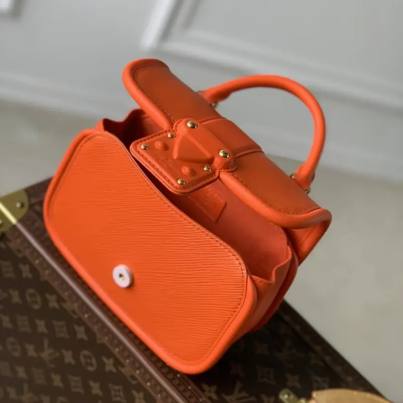 M22721 Orange This Hide & Seek bag is rendered in Epi leather in a bright hue with Toron rolled handles and leather wrapped S-lock clasp. The design is from Lbag’s heritage. The detachable shoulder strap is convenient for hand-carrying or cross-body, allowing you to elegantly carry it from day to night. 21 x 15 x 8 cm (length x height x width)