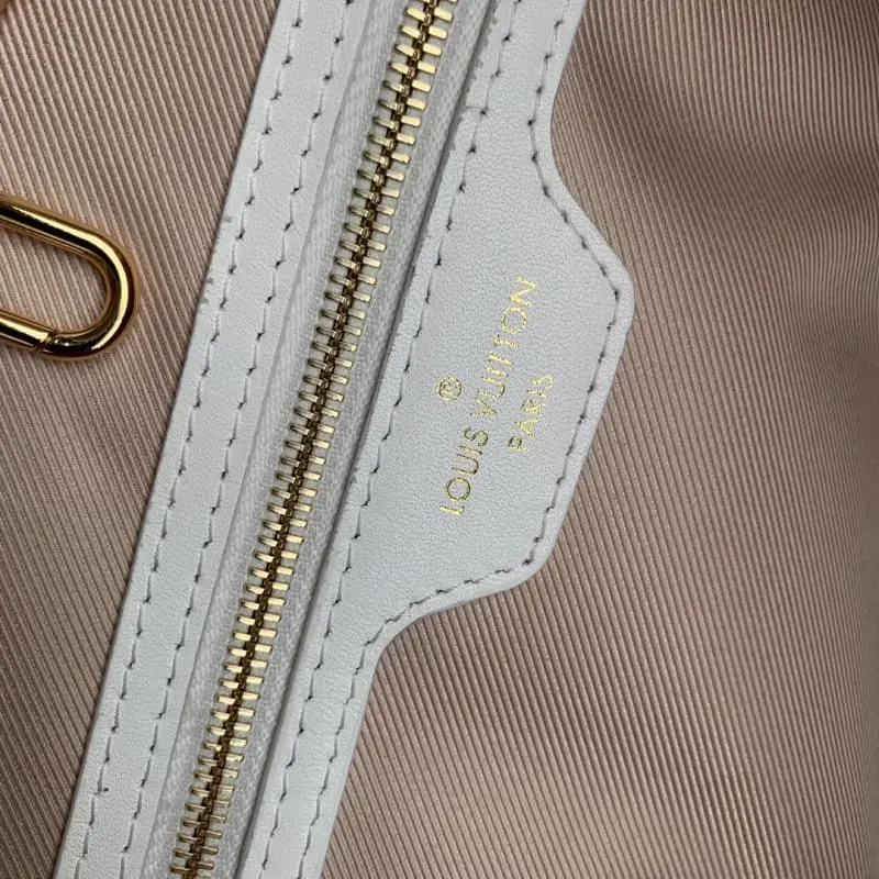 M22838 White Neverfull Medium Handbag from the new By the Pool collection exudes the carefree seaside holiday atmosphere. The Monogram pattern on the soft cotton fabric like raffia exudes a strong summer atmosphere. The flexible design allows ample capacity to be easily carried. Detailed Features 31 x 28 x 14 cm (length x height x width)
