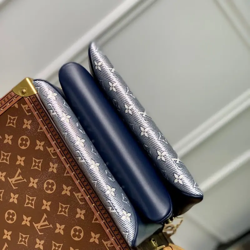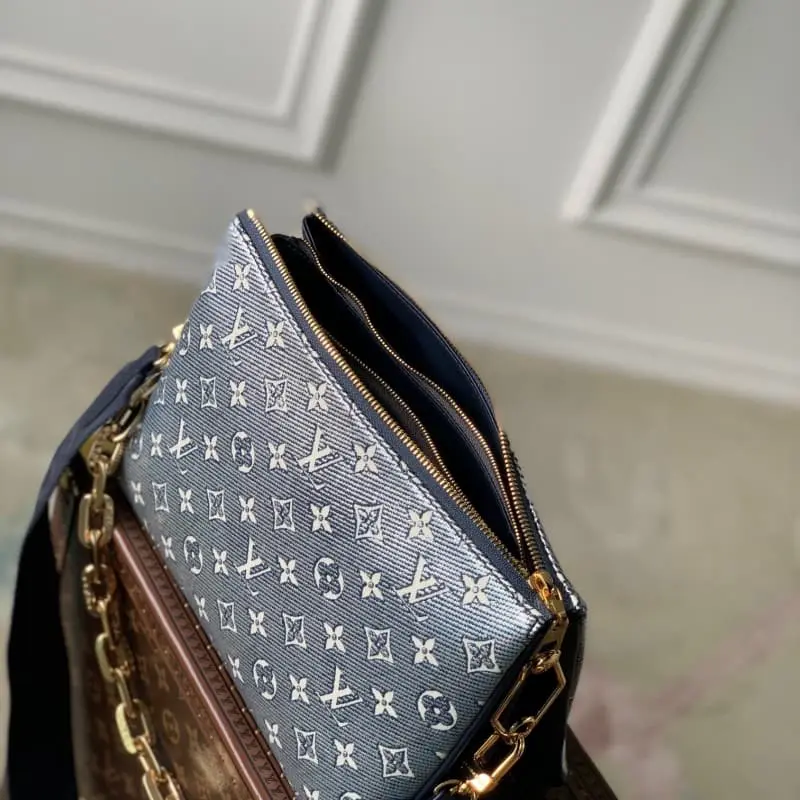 M23071 This small Coussin bag focuses on the Monoglam theme of the season. The soft and padded sheepskin depicts the Monogram pattern with dazzling colors to set off the light and shadow. The detachable wide fabric shoulder strap and LV chain are cleverly used to elegantly shuttle between day and night occasions. 26.0 x 20.0 x 12.0 cm (length x height x width)