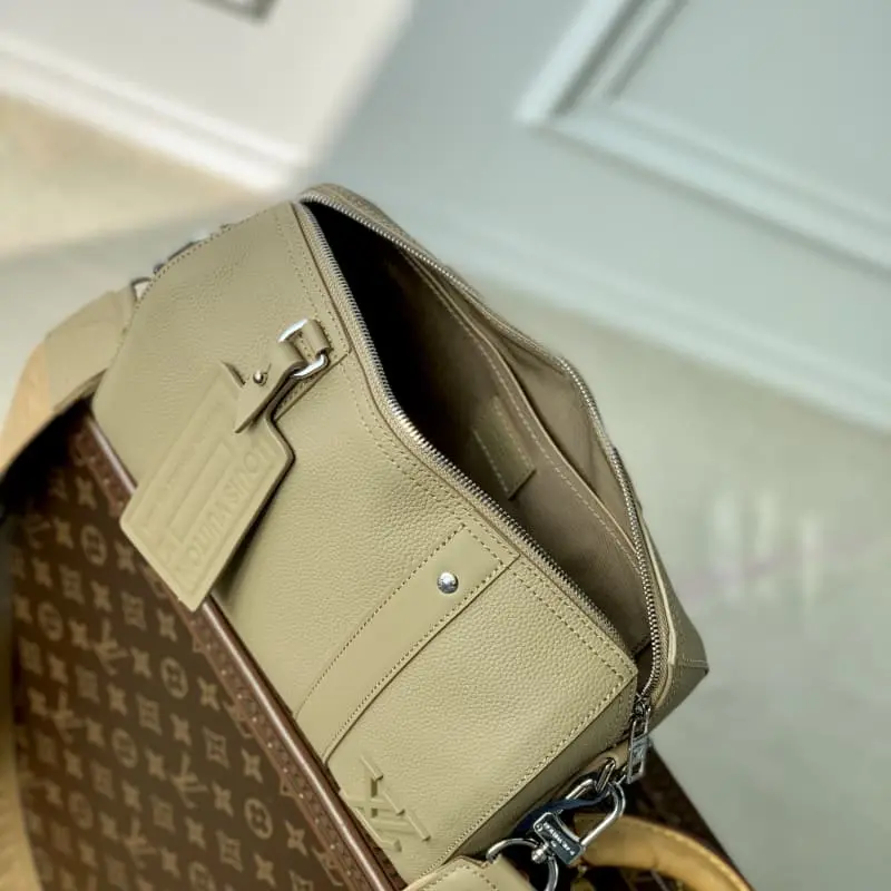 M23725 Blue This City Keepall bag is a unique brand name that speaks out the identity of the LV Aerogram series. The exquisite structure is matched with the same color metal LV letters and the Lbag logo is woven into the wide shoulder strap to achieve a comfortable shoulder and crossbody experience. 27.0 x 17.0 x 13.0 cm (length x height x width)