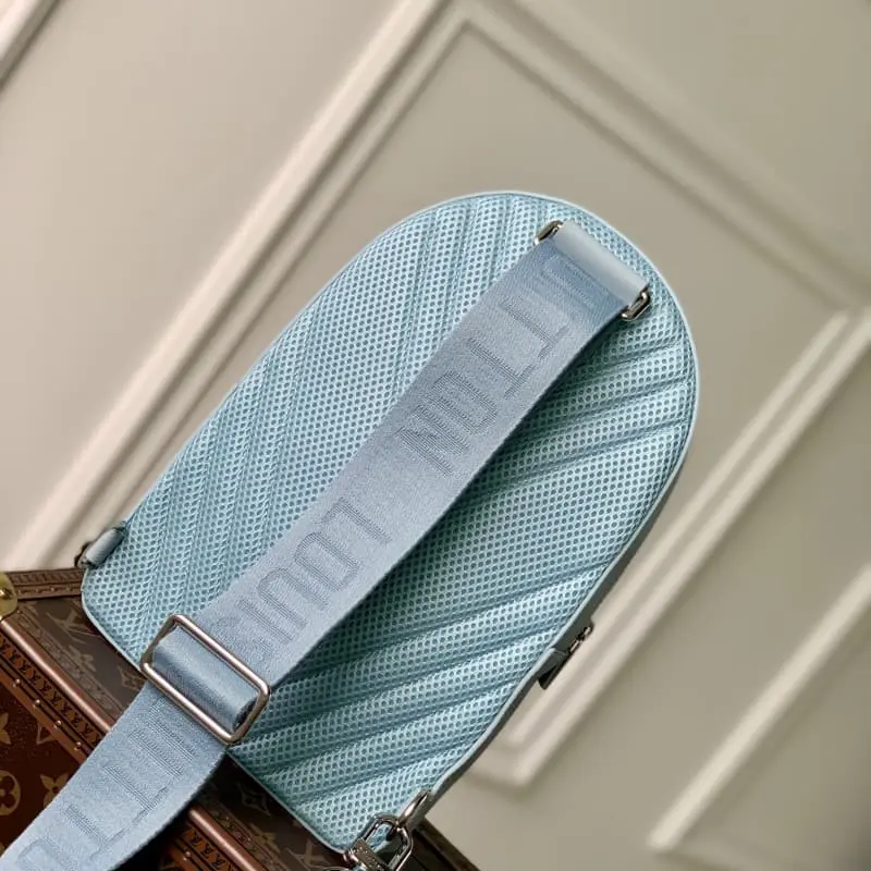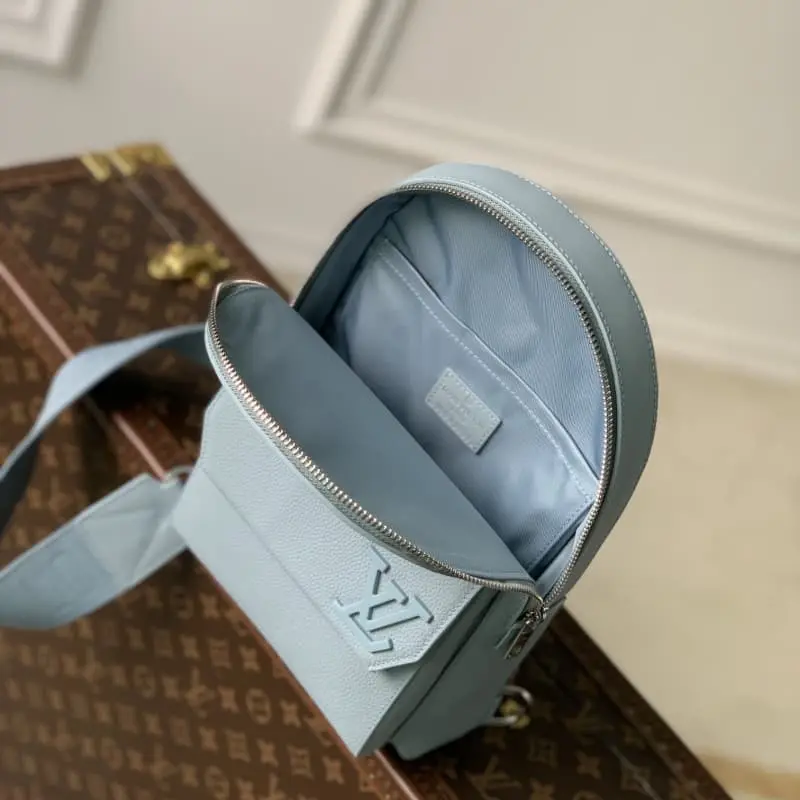 M23765 Light Blue This Pilot Shoulder Bag draws on the classic design of the Takeoff Backpack with rounded lines, front flap and iconic details of the LV Aerogram series to create a trendy choice. Magnetic closure ensures easy access and secure storage. Adjustable shoulder strap can be placed on the left or right side. 20.0 x 30.0 x 4.0 cm (length x height x width)