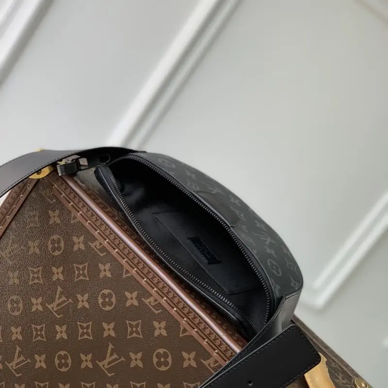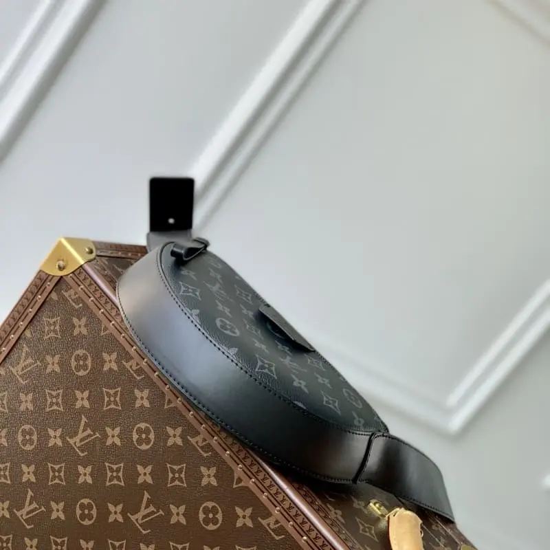 M23835 Black Flower Men’s Bag Moon Bag Series Autumn and Winter New LV MOON CROSSBODY Handbag This LV Moon Crossbody Handbag is made of Monogram Eclipse coated canvas with leather trim and shoulder strap. The elegant and elegant atmosphere is self-evident. The half-moon shape is convenient for front and back crossbody, and can easily store mobile phones, small wallets and headphones. 24.5 x 16 x 4.5 cm.