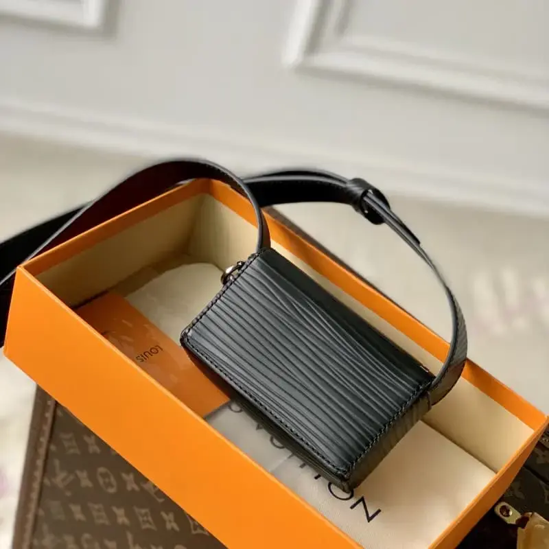 M23837 black micro steamer handbag water ripples Epi XL coarse grain leather condensed steamer mini handbag configuration. The brand’s traditional classic elements and modern design blend here. The metal chain and iconic safety pin inject personality. The adjustable leather shoulder strap ensures comfortable carrying. Dimensions: 13.0 x 8.0 x 4.5 cm